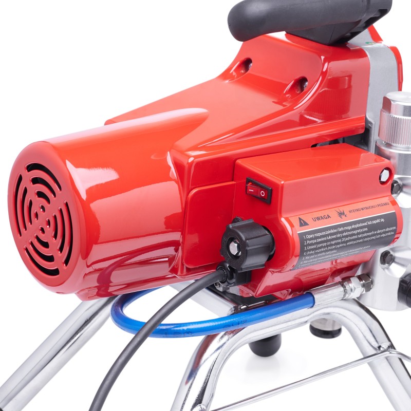 Agregat malarski wykorzystuje technologię tłokową, co umożliwia szybkie i efektywne malowanie bez konieczności używania wałków i pędzli. Dzięki temu, prace malarskie stają się znacznie prostsze i szybsze, co doceni każdy, kto ma do czynienia z dużymi projektami.