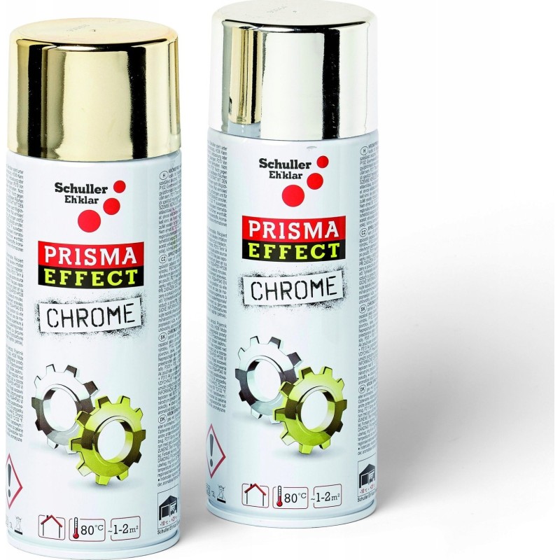 Opakowanie zawiera 400 ml lakieru w spray'u PRISMA EFFECT CHROME w kolorze złotym/srebrnym.