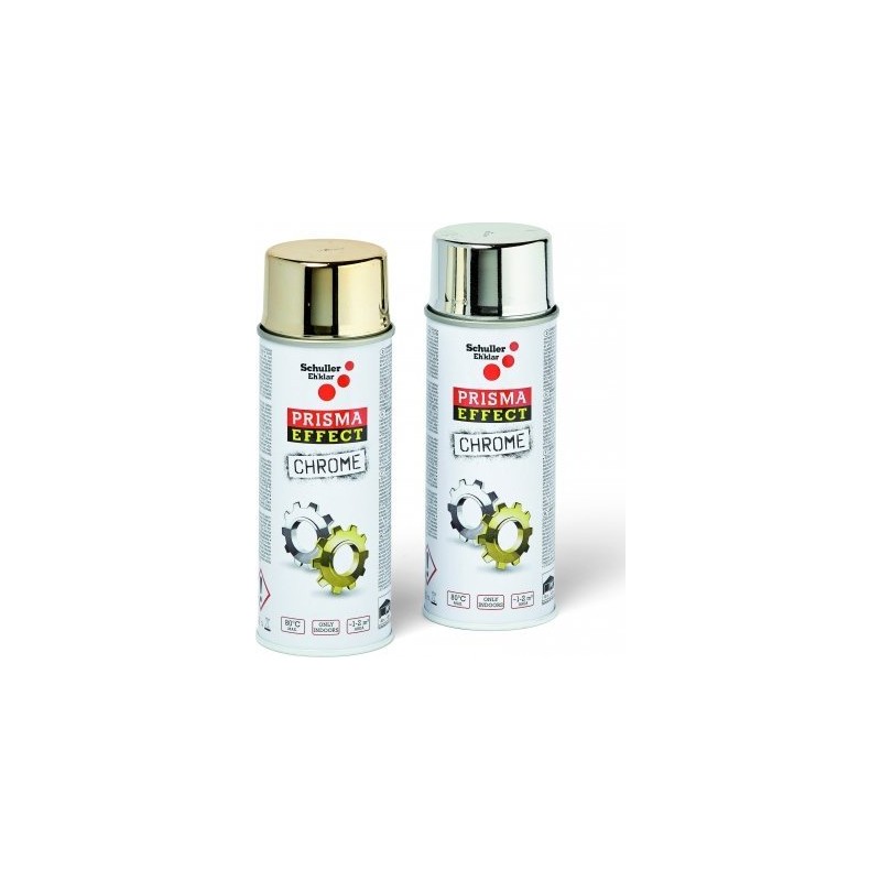 Lakier w spray'u PRISMA EFFECT CHROME wyróżnia się intensywnym blaskiem. Na gładkich powierzchniach lakier tworzy efekt zpolerowanego złota lub srebra.