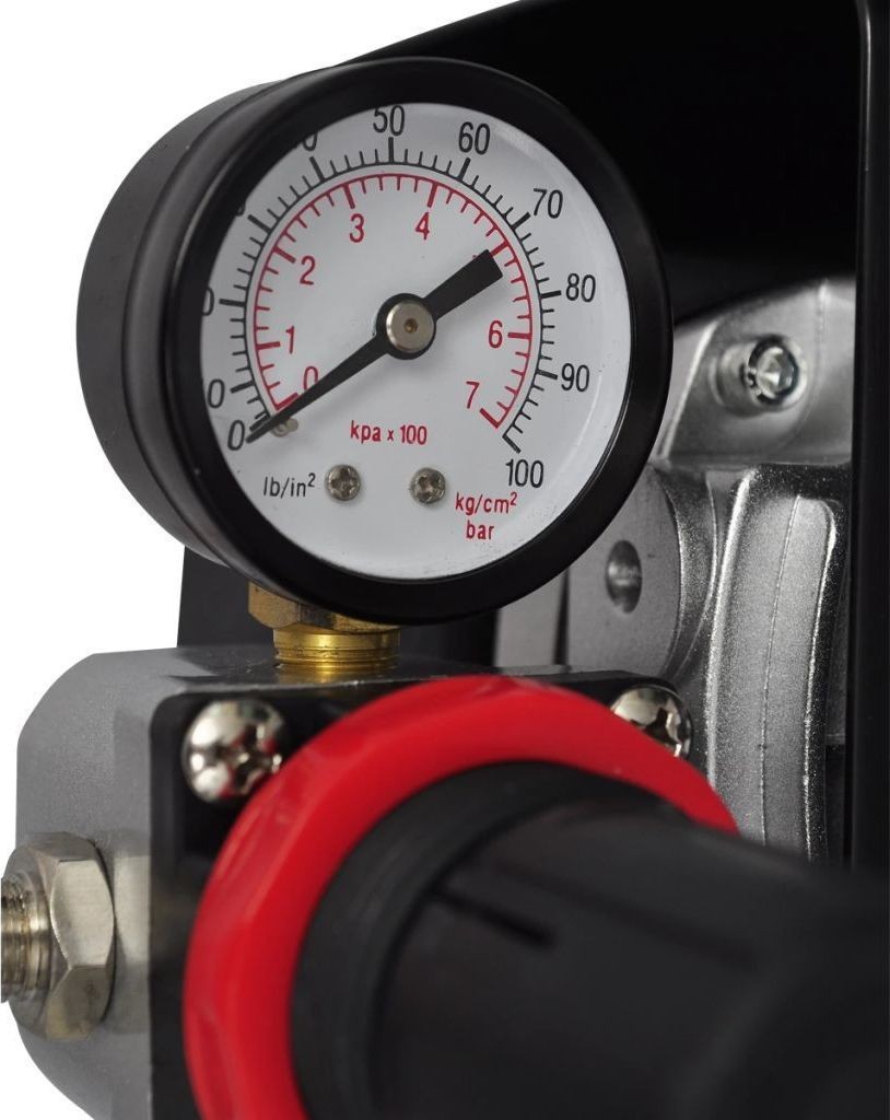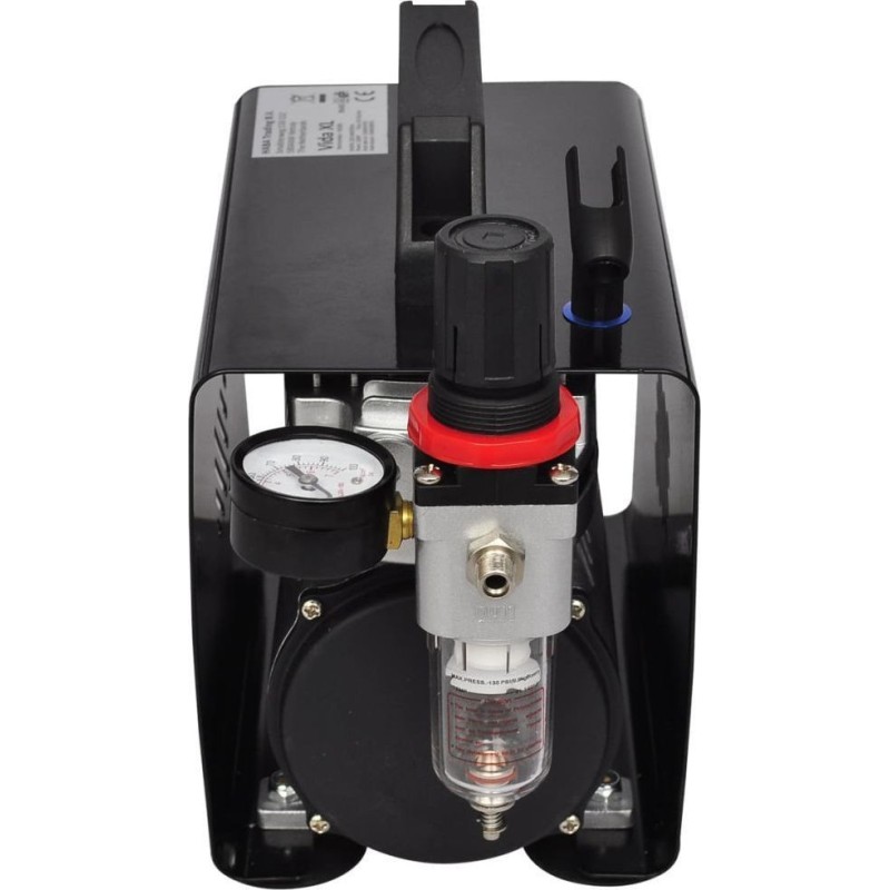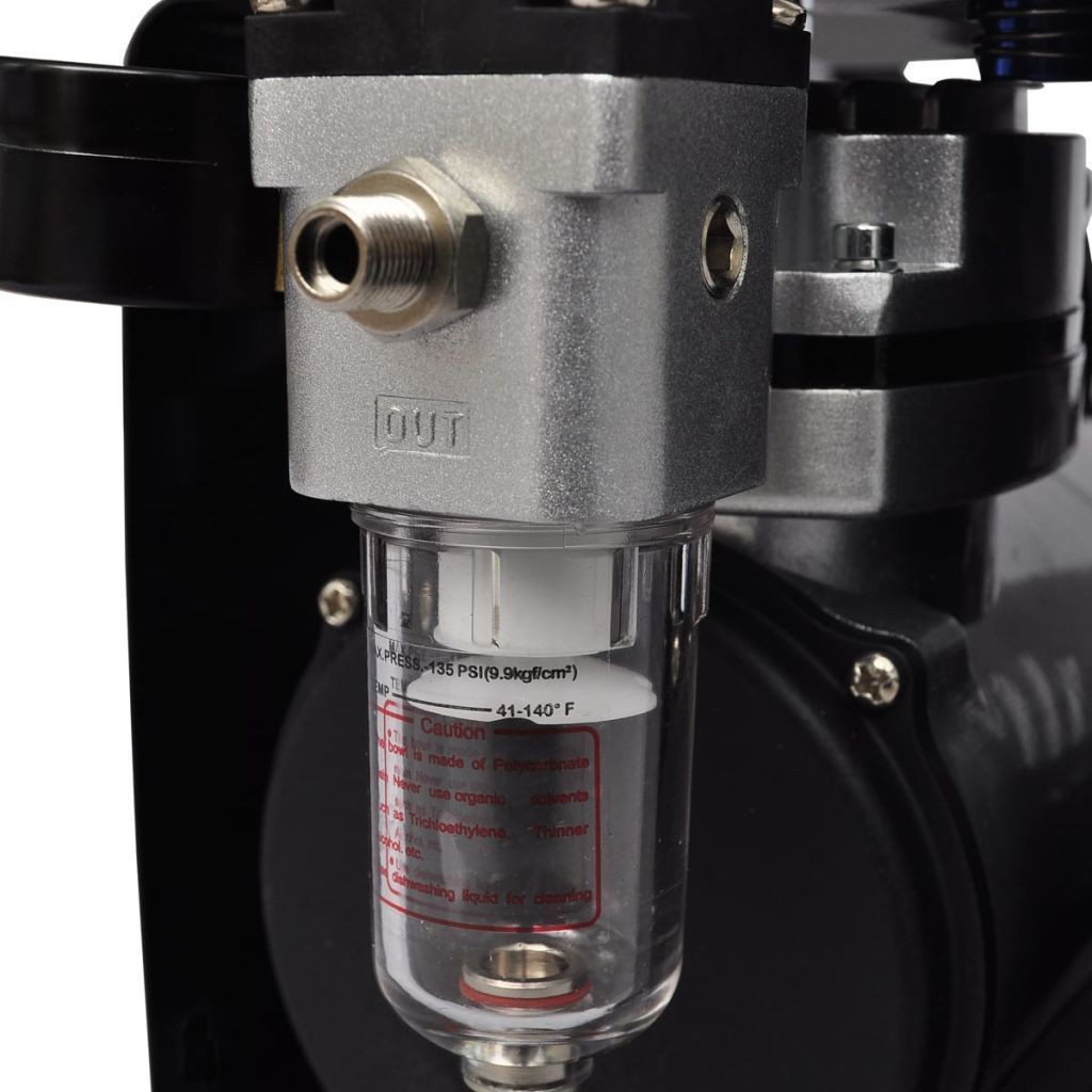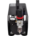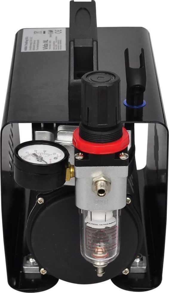 Ten mini kompresor z regulacją powietrza, filtrem powietrza i manometrem świetnie nadaje się do pistoletów z dyszą rozmiaru 0,2 - 1,0 mm.