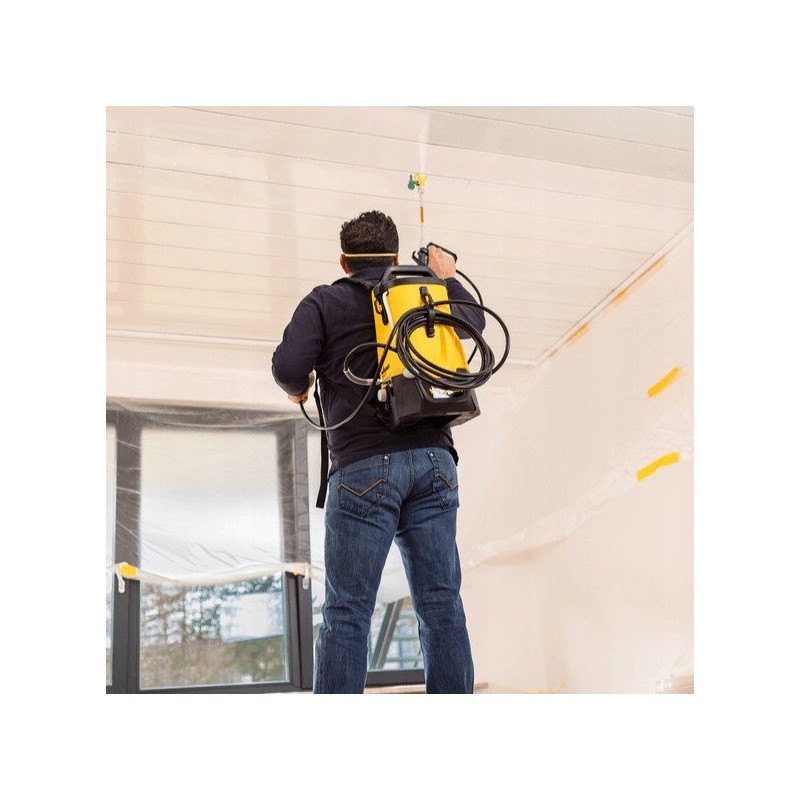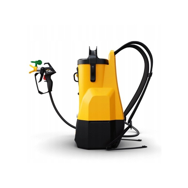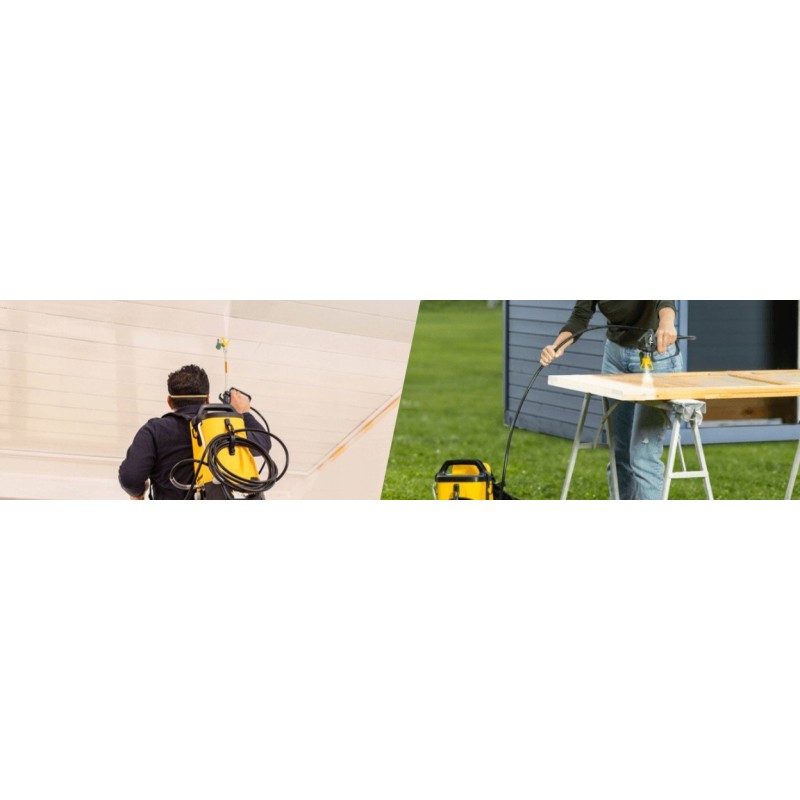 W zestawie znajduje się długi wąż ciśnieniowy o długości 7,6 metra, co zwiększa zasięg pracy i komfort użytkowania. Dodatkowo, ergonomiczny pas nośny zapewnia wygodę podczas długotrwałego malowania.