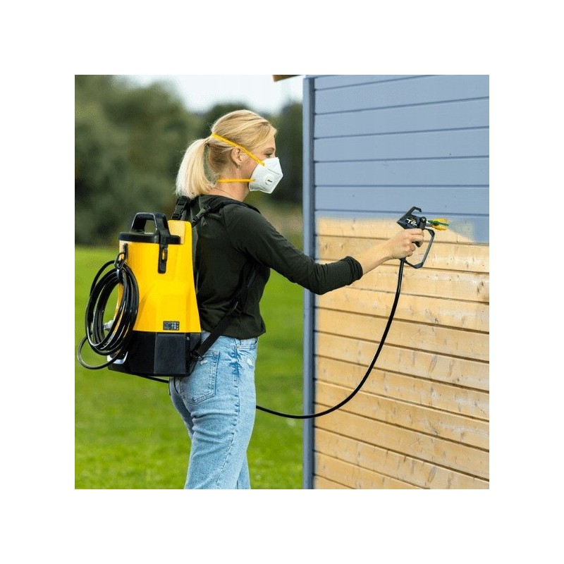 Urządzenie wyposażone jest w zbiornik o pojemności 4,7 litra, co pozwala na dłuższą pracę bez konieczności częstego uzupełniania farby. To doskonałe rozwiązanie dla większych projektów, gdzie czas i efektywność mają kluczowe znaczenie.