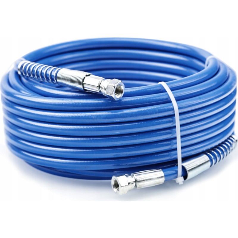 ✔️ Wąż do agregatu malarskiego 8m niebieski: Wąż o długości 8 metrów, przeznaczony do podłączenia agregatu malarskiego, umożliwiający płynne przepływanie farby z agregatu do pistoletu.