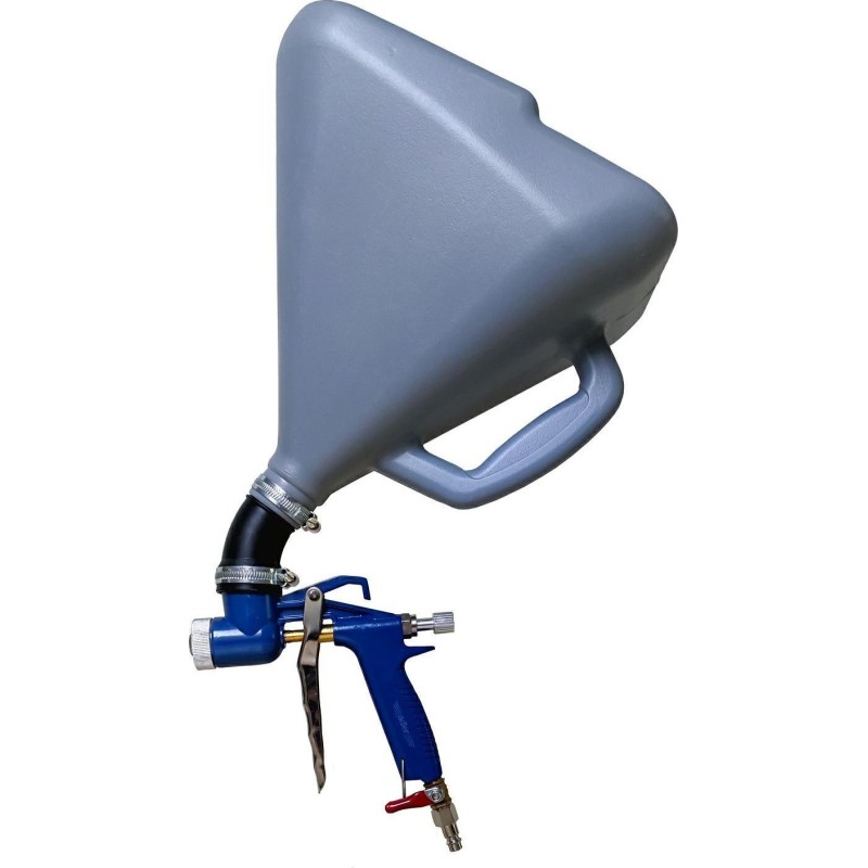 W zestawie z pistoletem: zbiornik 8,5l, reduktor powietrza, złączka, kolano, opaski zaciskowe, dysze 4, 6, 8mm z uszczelkami.