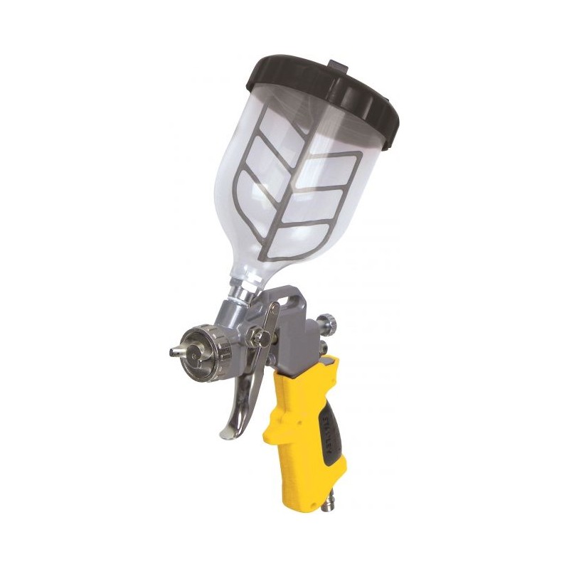 Stanley z górnym zbiornikiem oraz wbudowanym mieszalnikiem to wysokiej jakości narzędzie o uniwersalnym zastosowaniu, wykorzystywany do nakładania szerokiej gamy lakierów i farb. Cechuje się wysoką wydajnością natrysku, prostą konserwacją i niedużym zapotrzebowaniem na powietrze. Znakomicie sprawdza się w lakiernictwie samochodowym, stolarstwie i lakierowaniu przemysłowym. Wykonany jest z wytrzymałej stali oraz tworzywa. Rękojeść pokryta jest materiałem antypoślizgowym. Urządzenie wyposażone w mieszadło.