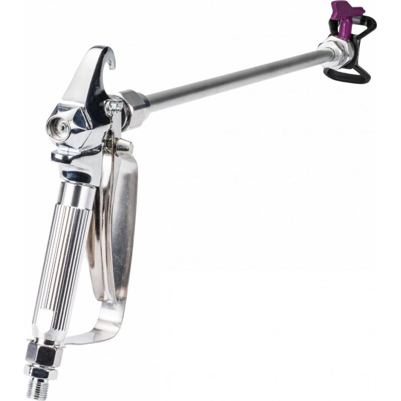 Dołączony do zestawu pistolet współpracuje z szeroką gamą dostępnych na rynku dysz różnych producentów.