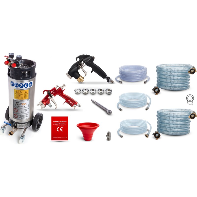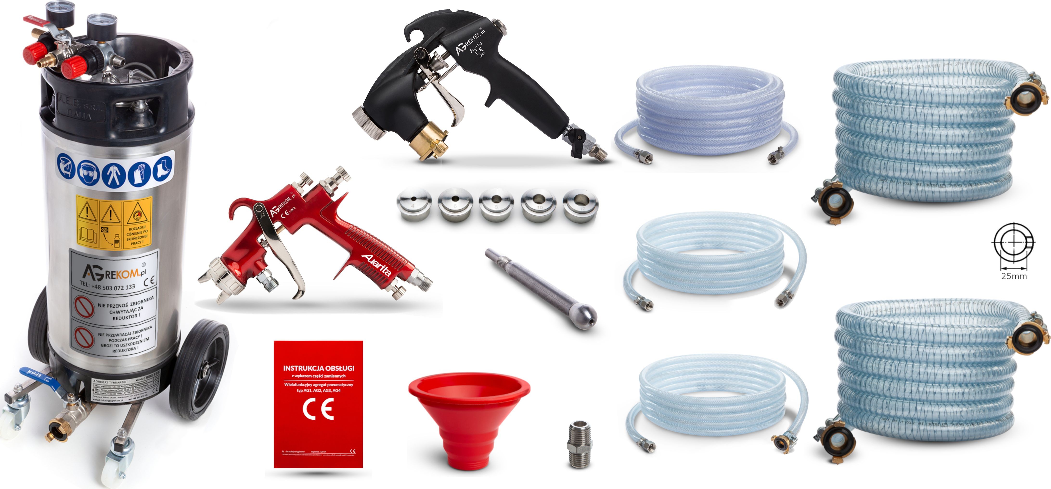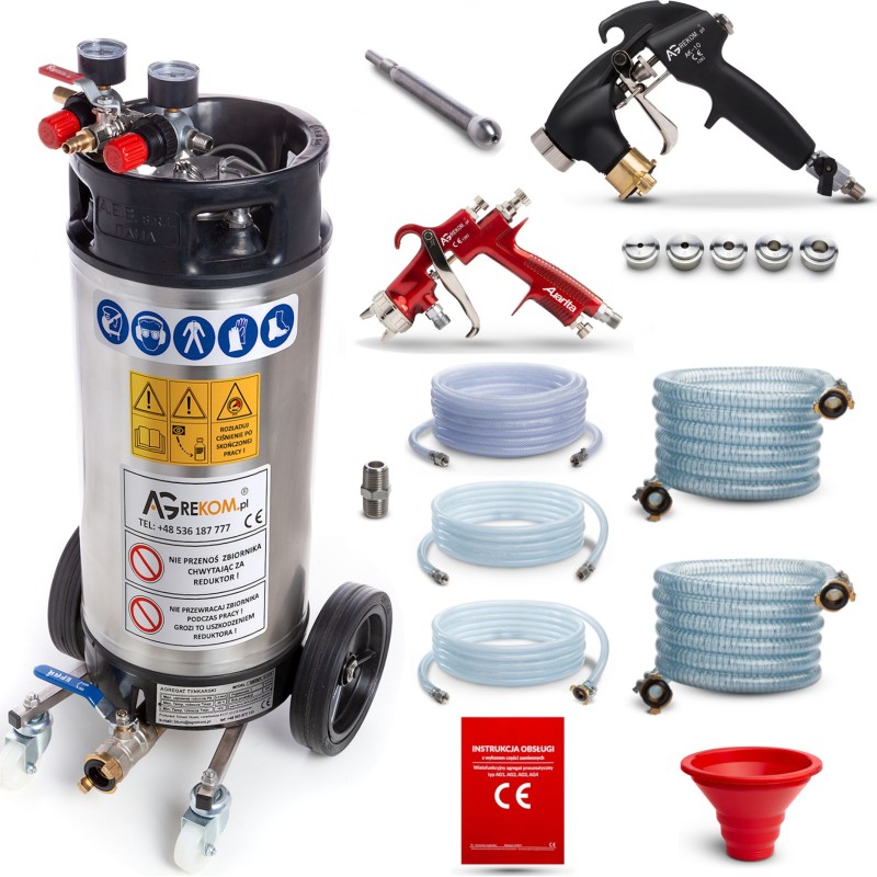- 10 m węża zbrojonego z okuciami do podłączania powietrza w pistoletach,