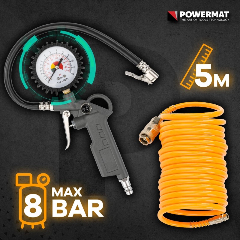 Powermat ZESTAW NARZĘDZI PNEUMATYCZNYCH MALARSKICH DO KOMPRESORA PISTOLET WĄŻ 18 EL.