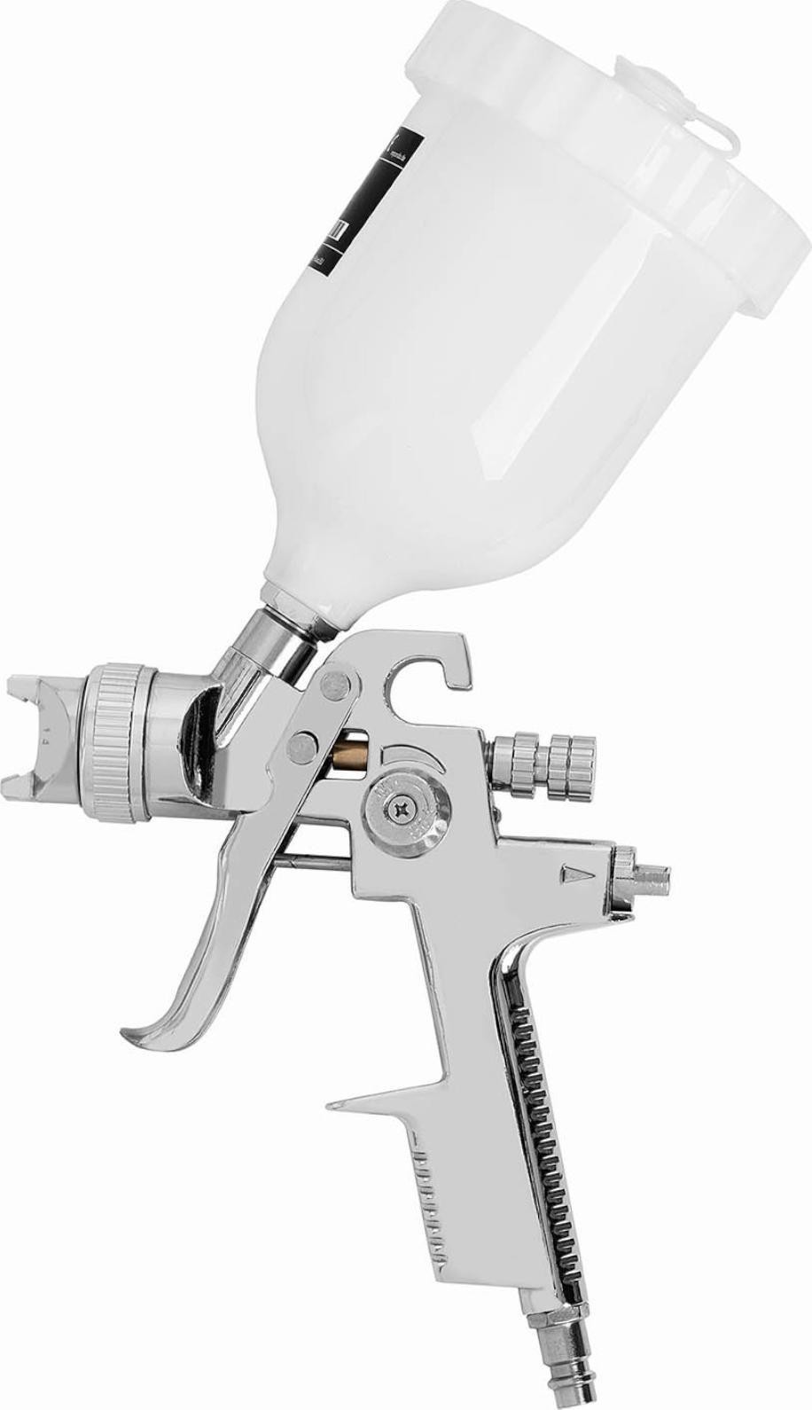 Pistolet do malowania marki MSW sprawdzi się do równomiernego nakładania farb, lakierów czy glazur. Ciśnienie robocze wynosi 3,5-5 bar a zużycie powietrza 170-283 l/min. Technologia HVLP zapewnia przez cały czas delikatną mgiełkę, która umożliwia precyzyjne i równomierne nakładanie farby. Przepływ powietrza jest regulowany w zależności od koloru i rodzaju materiału. Niewielka waga i ergonomiczny kształt pozwalają na używanie pistoletu przez dłuższy czas bez wysiłku. Zbiornik o pojemności 600 ml pozwala malować większe powierzchnie bez przerw. Obudowa urządzenia została wykonana z odlewanego ciśnieniowo aluminium, cechuje się długą żywotnością.