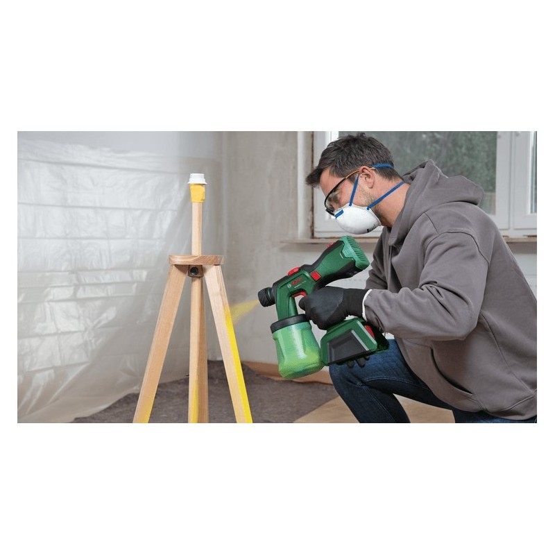 Niezwykle wydajny, energooszczędny pistolet natryskowy AdvancedSpray 18V-500 zapewnia profesjonalny rezultat malowania w pomieszczeniach i na zewnątrz, można go użyć m.in. do malowania mebli, okuć lub tarasów. Niskociśnieniowy, wydajny, akumulatorowy pistolet natryskowy jest narzędziem pierwszego wyboru dla majsterkowiczów, którzy cenią sobie swobodę ruchu, a przy tym chcą osiągnąć wyjątkowy i szybki efekt malowania. Dzięki wydajnemu silnikowi bezszczotkowemu oraz innowacyjnej technologii AirBoost to wydajne narzędzie wyznacza nowy standard dla akumulatorowych systemów malowania natryskowego, jeśli chodzi o równomierne nakładanie farby. Dwie nasadki powietrzne zapewniają wyjątkową elastyczność pracy: jedna zapewnia najwyższej jakości wykończenie, a druga szybkie tempo pracy. Elektryczny pistolet natryskowy wyróżnia się także tym, że posiada tylko jedną dyszę: innowacyjna dysza ALLPaint służy do malowania natryskowego przy użyciu lazury, lakieru lub farby ściennej. Doskonały rezultat malowania, ilość nakładanej farby oraz ilość powietrza można precyzyjnie wyregulować za pomocą funkcji EasySelect i bezstopniowych pokręteł. Elektronarzędzie jest częścią systemu 18V POWER FOR ALL. Możliwość zastosowania jednego akumulatora do wszystkich elektronarzędzi 18V POWER FOR ALL.