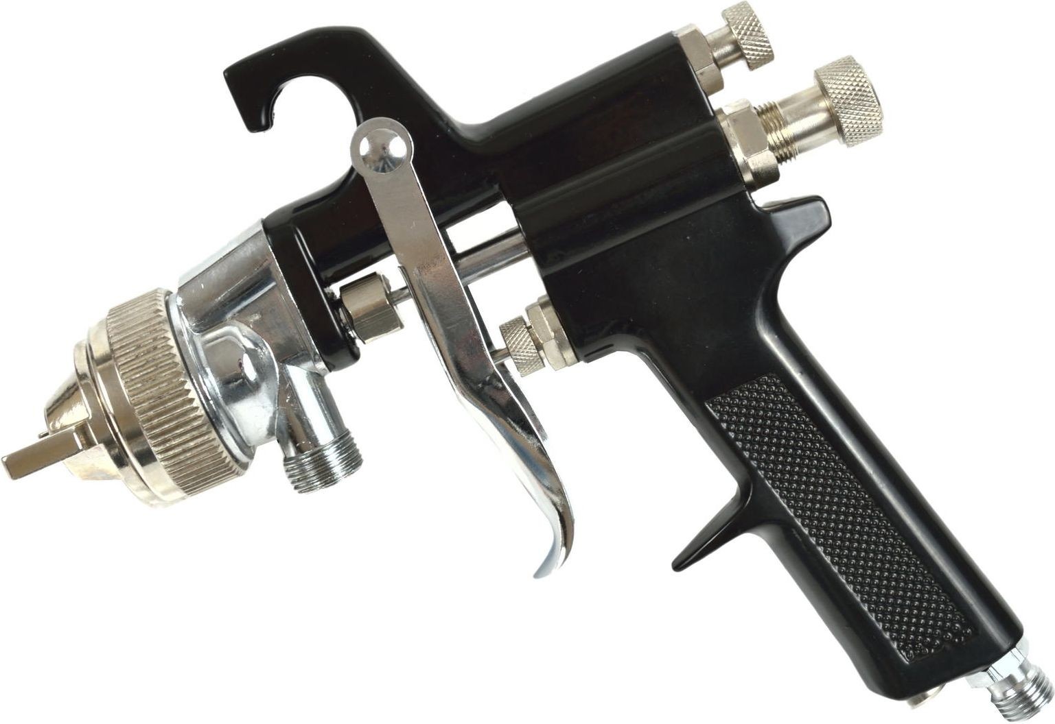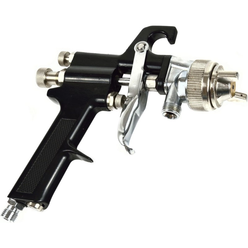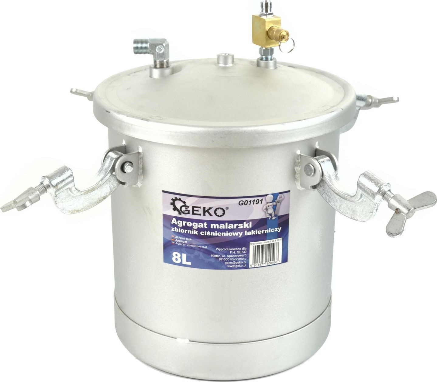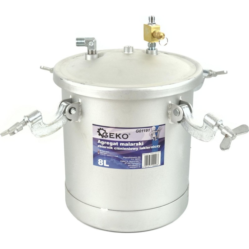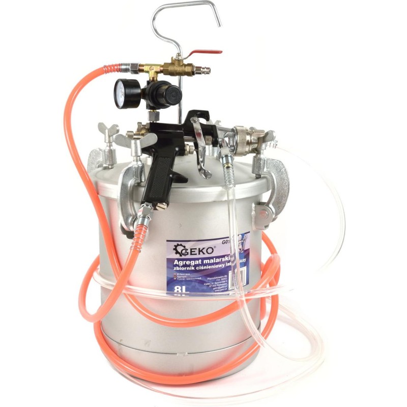 Agregat malarski - zbiornik lakierniczy ciśnieniowy 8L Pistolet natryskowy pneumatyczny stosowany w połączeniu ze zbiornikiem malarskim. Zestaw cechują bardzo dobre parametry rozpylania oraz duża prędkość malowania. Szerokość natrysku do 40 cm w odległości 20 cm od malowanej powierzchni. System natryskowy pozwala na stosowanie dużej ilości farby, którą można szybko nakładać oszczędzając przy tym czas i pieniądze. Gładki stalowy pojemnik ciśnieniowy o wysokiej odporności na korozję dzięki pokryciu zbiornika powłoką metaliczną nieelektrolityczną "Dacromet". Dakrometyzowanie jest procesem, w którym stosuje się dyspersję wodną przez zanurzanie lub nakładanie warstwy natryskowo, co prawie całkowicie wyklucza ryzyko wystąpienia korozji wodorowej. Powłoka, jest pasywowana podczas wytwarzania i zapewnia wysoką odporność na korozję. Cechy produktu wygodne malowanie bez ciągłego dolewania farby zbiornik lakierniczy ciśnieniowy o pojemności 8 litrów ciśnienie robocze zbiornika: 1,7 - 3,0 bar reduktor powietrza o skali 0 - 12 bar zawór odpowietrzający przyłącze powietrza zbiornika: 1/4" z zaworem kulkowym pistolet natryskowy HP wysokociśnieniowy z dyszą 2,0 mm ciśnienie robocze pistoletu: 3,0 - 4,0 bar zużycie powietrza: 170 - 250 L/min przyłącze węża z farbą/klejem: 3/8" przyłącze powietrza pistoletu: 1/4" Doskonały do malowania profesjonalego w sytuacjach w których wymagana jest duża ilość farby takich jak: lakierowanie samochodów osobowych i dostawczych, prace wykończeniowe w budownictwie i przemyśle. Do stosowania z: farby olejne, farby lateksowe, lakiery, podkłady, lakierobejce, tapety natryskowe, kleje kontaktowe, dyspersyjne i wiele innych. W zestawie znajdują się: zbiornik lakierniczy, reduktor powietrza, pistolet HP natryskowy, hak do powieszenia pistoletu, 3m wąż do przyłączenia powietrza oraz 3m wąż podający farbę do pistoletu.