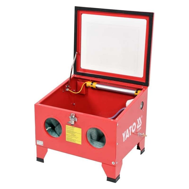 Pneumatyczna piaskarka kabinowa do szybkiego i wygodnego oczyszczania z rdzy, farby i zabrudzeń za pomocą krążącego w obiegu zamkniętym ścierniwa. Niezastąpiona