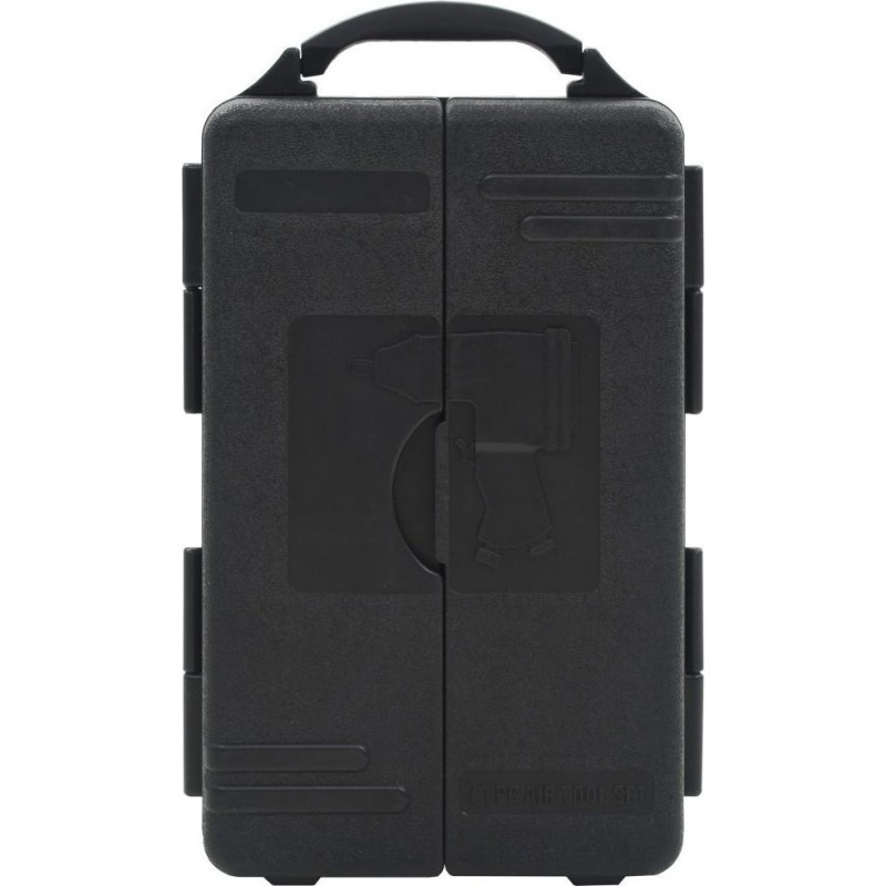 Kompletny zestaw składa się z popularnych narzędzi pneumatycznych (klucz udarowy 1/2", szlifierka 1/4", klucz pneumatyczny 3/8", młot pneumatyczny 150 mm i pistolet pneumatyczny), a także potrzebnych akcesoriów (takich jak mocowania węża i złączki, dłuta, kamienie szlifierskie, gniazda udarowe itp.) do zastosowań profesjonalnych przy napędzaniu narzędzi pneumatycznych, piaskowaniu, dłutowaniu itp. Zestaw sprawdzi się w garażu, warsztacie i pracowni.