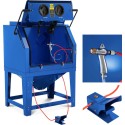 MSW Piaskarka kabinowa ciśnieniowa z oświetleniem i pedałem nożnym 990 l - zestaw Piaskarka kabinowa ciśnieniowa z oświetleniem