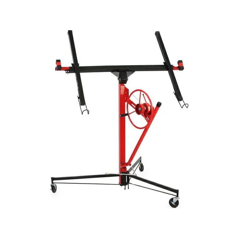 Stabilne ramię wykonane z czworokątnego pręta z naniesioną calową i metryczną podziałką. Pozwala to na wszechstronne wykorzystywanie w bardzo wielu pracach instalacyjnych i wykończeniowych. Idealne i niezastąpione narzędzie do prac wykończeniowych, bardzo proste w obsłudze, posiadające mechanizm zapobiegający samozłożeniu (kontrolowany za pomocą rączki). Dzięki obrotowemu systemowi ułatwia montowanie płyt na sufitach, ścianach oraz wszelkich skosach. Stabilność urządzenia zapewnia blokada kółek.