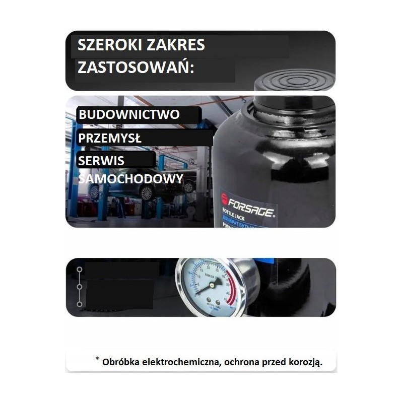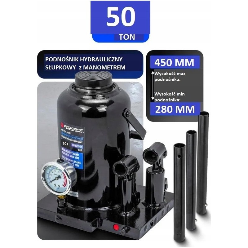 PODERWACZ HYDRAULICZNY KOLUMNOWY BUTELKOWY z MANOMETREM 50T/50000 KG FIRMY FORSAGE.