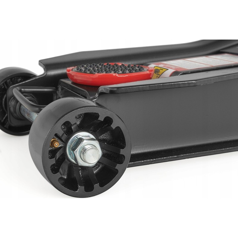 - ✔️ Wyposażony w dwa stalowe koła skrętne 360° oraz dwa koła stałe łożyskowane z funkcją smarowania, podnośnik jest łatwy do manewrowania i zapewnia pełną mobilność.