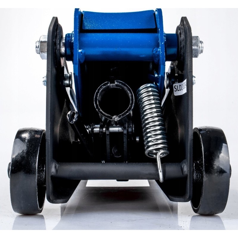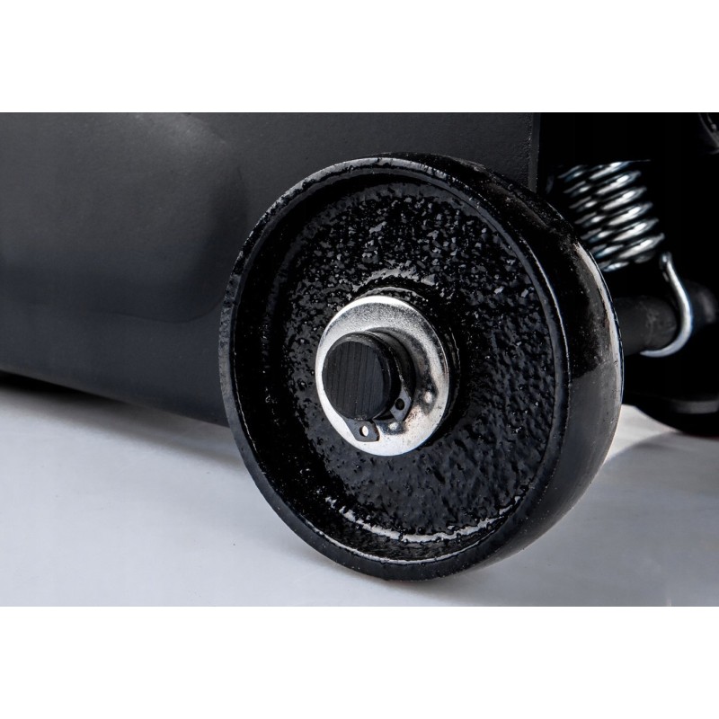 Dzięki odpowiednio zaprojektowanym kołom, ten podnośnik może być łatwo ustawiony w dowolnym punkcie pod samochodem. Ich konstrukcja znacznie ułatwia manewrowanie tym narzędziem. Ich duża średnica sprawia, że z łatwością będziesz sterować podnośnikiem nawet na nierównych powierzchniach.