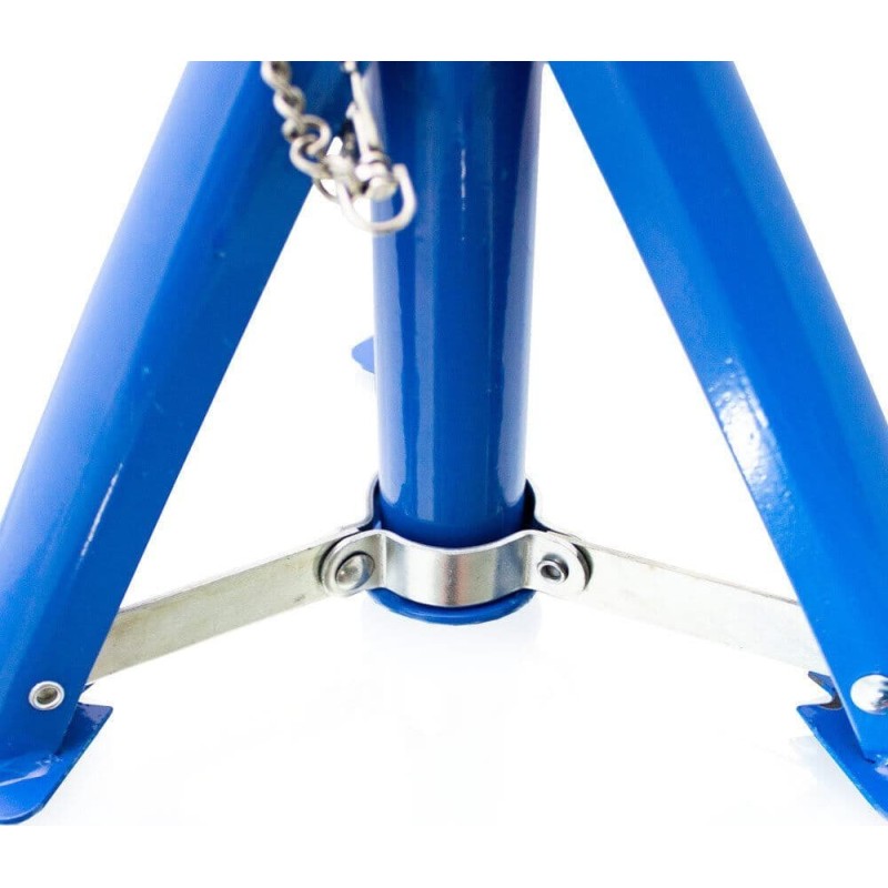 Bezpieczne podnoszenie! Dzięki regulowanym kobyłkom możesz podnosić ładunki nawet do 2 ton. Idealnie nadadzą się do różnych prac konserwacyjnych. Wysokość można regulować za pomocą śrubowego zabezpieczenia od 27,7 do 36,5 cm. Podpory sprawdzą się w warsztatach, salonach samochodowych, firmach przewozowych i w usługach holowniczych.