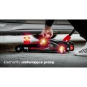 Solidna jednostka hydrauliczna oraz niski profil sprawiają, że urządzenie jest uniwersalne i sprawdza się zarówno w domowym garażu, jak i profesjonalnym warsztacie