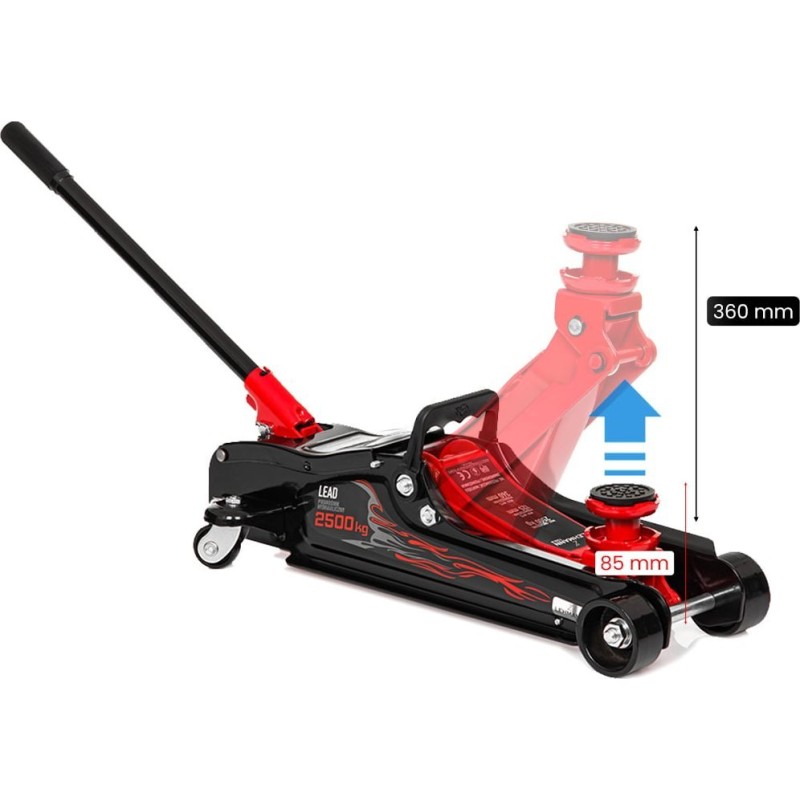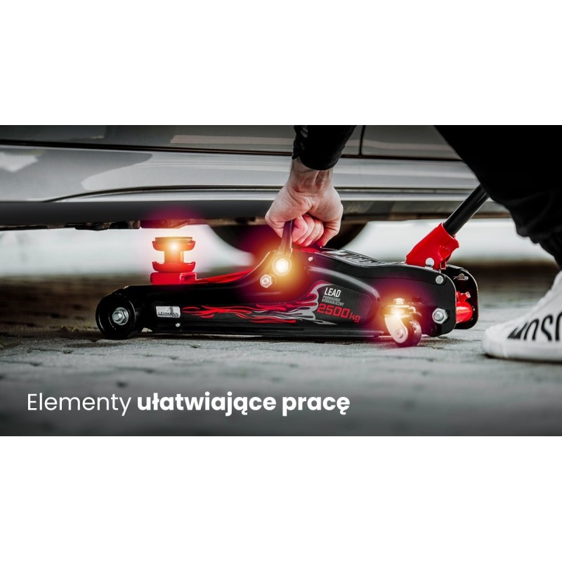 Profesjonalnie wykonany podnośnik został posiadający skuteczną pompę, dzięki czemu jest w stanie bez problemu podnosić pojazdy i przedmioty o maksymalnej wadze do 2500 kg. Urządzenie doskonale przyda się każdemu użytkownikowi auta nie tylko w awaryjnych sytuacjach, ale również do samodzielnych prac przy samochodzie takich jak