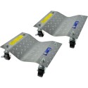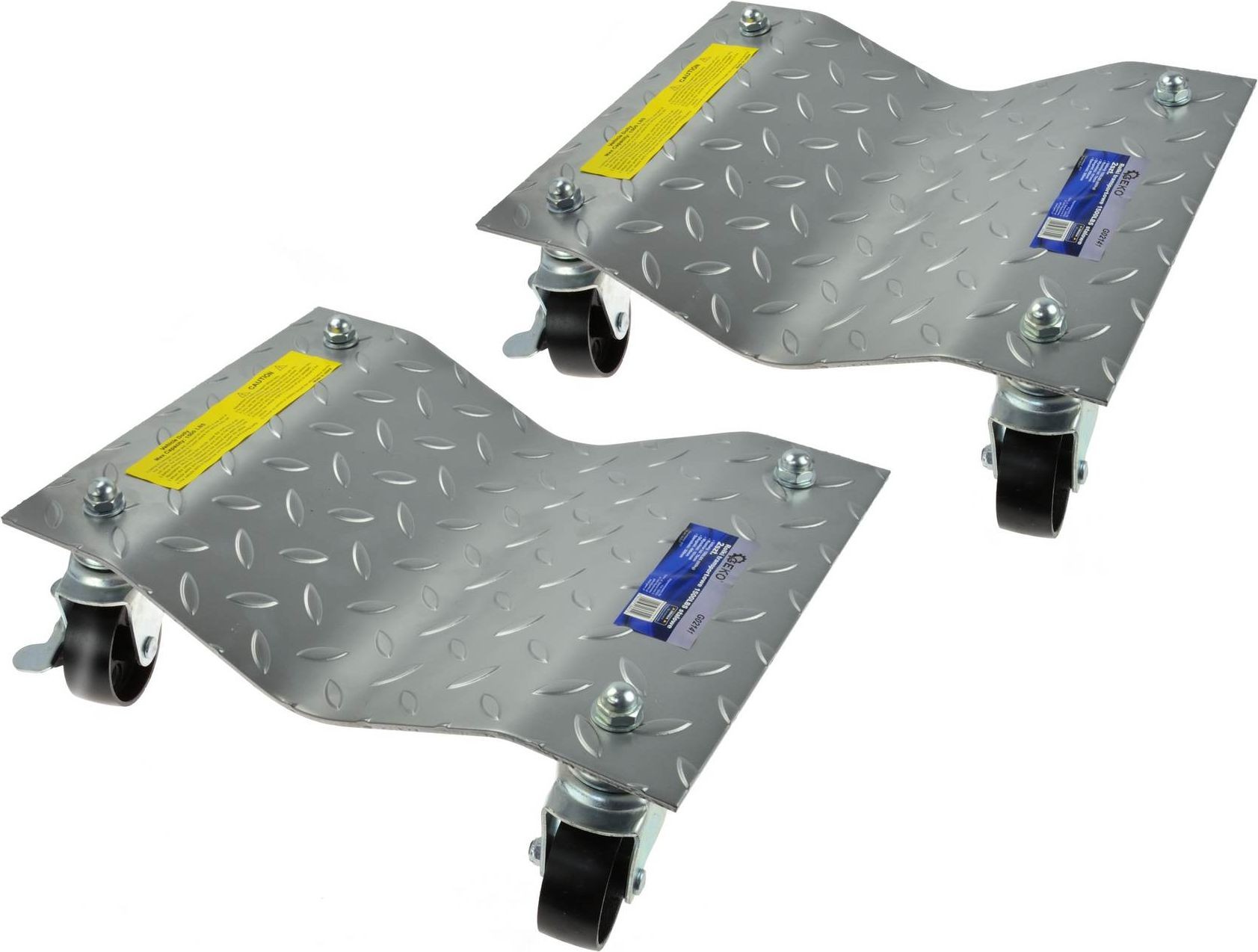 Zestaw dwóch rolek transportowych do transportu pojazdów. Każda z rolek o udźwigu maksymalnym 680 kg. Idealnie nadają się do użytku w profesjonalnych warsztatach i przydomowych garażach. Charakterystyka produktu wymiary platformy 406 mm x 203 mm antypoślizgowa struktura platformy 4 kółka obrotowe 360° w tym 2 z hamulcem postojowym 2 sztuki w komplecie Dane techniczne Udźwig: 680 kg (1500 lbs) / sztuka Średnica kółek: 76 mm Wysokość: 70 mm / 115 mm Długość: 406 mm (16") Szerokość: 302 mm (11-7/8") Ilość sztuk w komplecie: 2 Materiał wykonania: stal Waga: 7,75 kg / sztuka