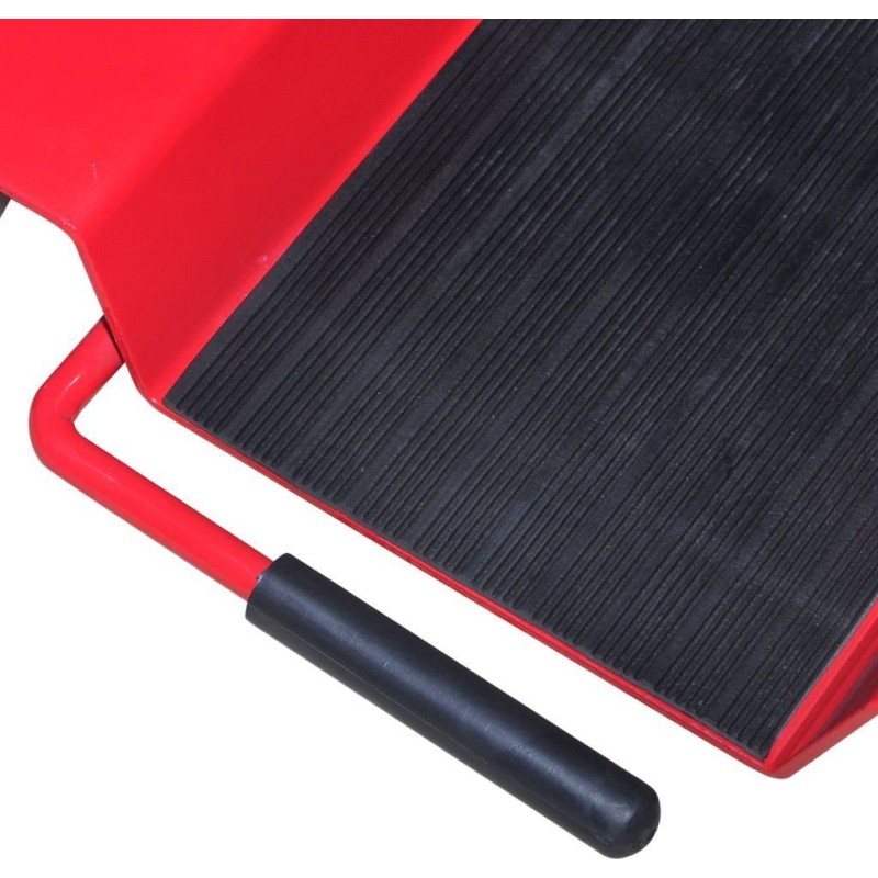 Wykonany z mocnej, pomalowanej stali wózek pod motocykl jest niezwykle mocny i trwały. Dzięki jego kompaktowej konstrukcji łatwo go schować, gdy nie jest używany.