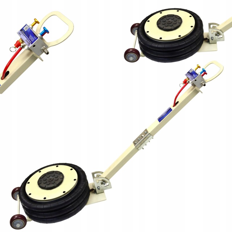 Poduszka podnośnika wykonana jest z zbrojonego kauczuku, co zapewnia jej wysoką wytrzymałość i odporność na uszkodzenia. Dzięki temu urządzenie jest nie tylko efektywne, ale także trwałe, co czyni je idealnym wyborem dla profesjonalistów.