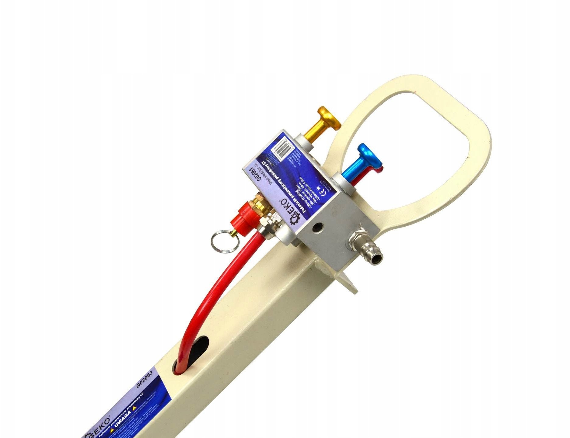 Podnośnik pneumatyczny Geko jest wyposażony w zawór bezpieczeństwa przy ciśnieniu 24 bar, co dodatkowo zwiększa jego funkcjonalność i bezpieczeństwo. Umożliwia to wygodną obsługę oraz zapewnia pełną kontrolę nad procesem podnoszenia.