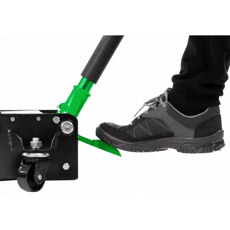 Obsługa podnośnika jest niezwykle prosta dzięki intuicyjnemu mechanizmowi sterowania oraz możliwości pompowania nożnego. To sprawia, że korzystanie z urządzenia jest komfortowe i nie wymaga dużego wysiłku.