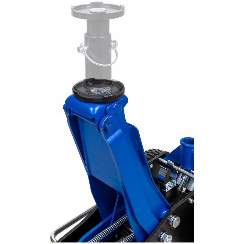 Jest to podnośnik dwutłokowy, który zapewnia bardziej wydajne i szybsze podnoszenie samochodu lub innego pojazdu. Dzięki dwóm tłokom podnośnik ten zapewnia większą siłę podnoszenia i lepszą stabilność podczas użytkowania. Podnośnik samochodowy posiada większe koła, które umożliwiają pracę na nierównych lub szorstkich powierzchniach (śnieg, piasek, błoto, nierówny asfalt itp.), a także wygodny uchwyt do przenoszenia i składany uchwyt, ułatwiający przechowywanie.