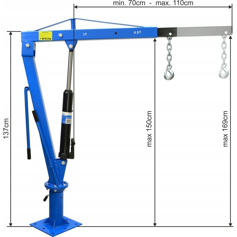 - Udźwig w zależności od wysunięcia ramienia: 500 / 1000kg