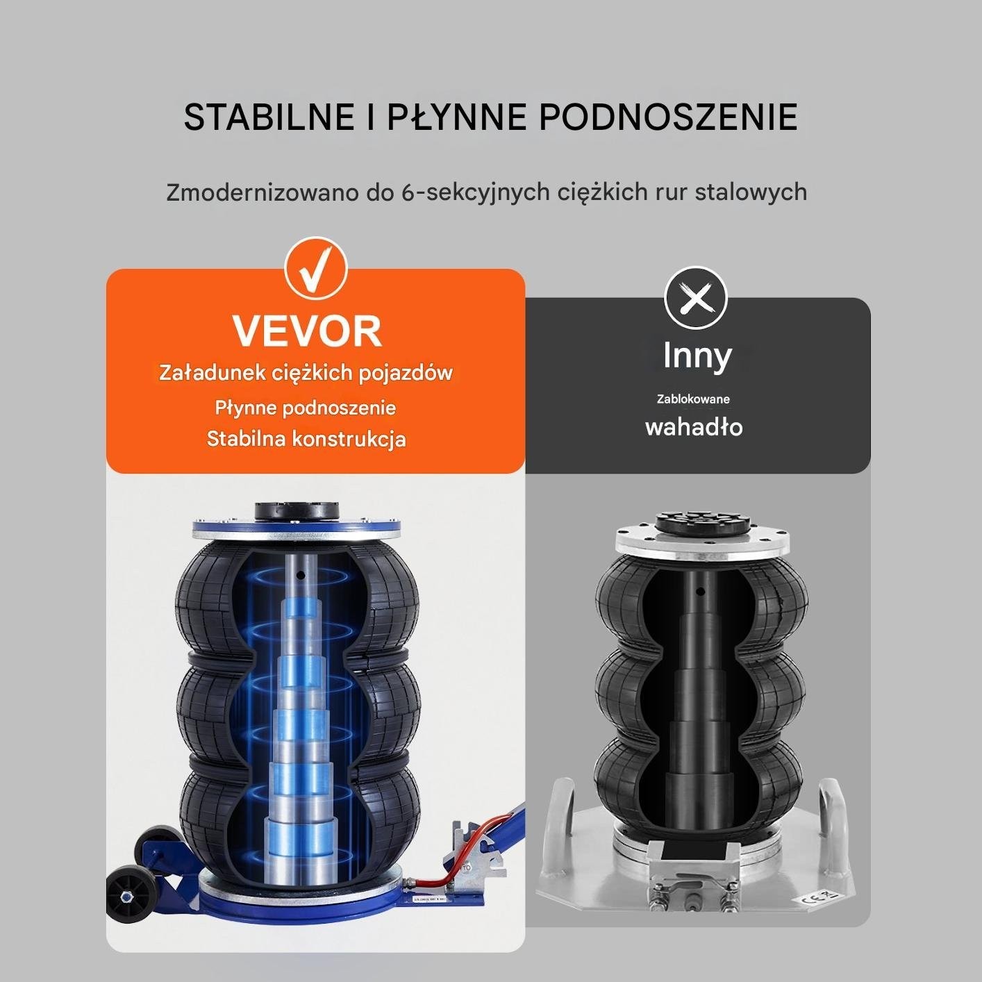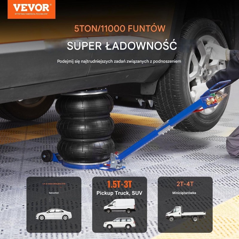Podnośnik pneumatyczny 5T to profesjonalne urządzenie, które doskonale sprawdzi się zarówno w warsztatach, jak i w domowym użytku. Dzięki potrójnej poduszce powietrznej, zapewnia stabilność i bezpieczeństwo podczas podnoszenia pojazdów, co czyni go świetnym wyborem dla mechaników oraz pasjonatów motoryzacji.