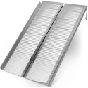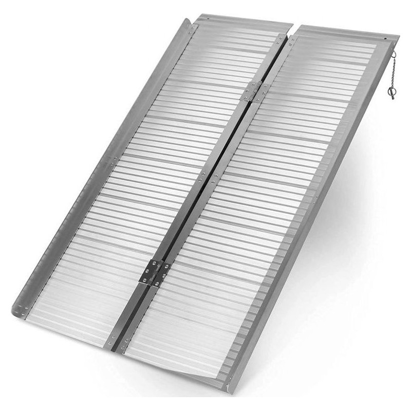 Ta przenośna rampa jest wyposażona w krawędź do zawieszania do zaczepienia na pojeździe i jest przeznaczona do bezpiecznego użytkowania przez osoby na wózkach inwalidzkich. Niska waga, składanie i uchwyt ułatwiają przenoszenie rampy, a jej nośność 270 kg jest odpowiednia dla różnych wózków inwalidzkich i innego sprzętu pomocniczego. Rampa wykonana jest z aluminium, co zapewnia trwałość i odporność na korozję, dzięki czemu idealnie nadaje się do użytku na zewnątrz. Rampa wózka inwalidzkiego jest niezbędna w życiu osób o ograniczonej sprawności ruchowej, umożliwia łatwiejszy dostęp do pojazdów, a jej lekka konstrukcja ułatwia transport, montaż i przechowywanie, a ząbkowana powierzchnia i boczne szyny zapewniają maksymalne bezpieczeństwo. Idealnie nadaje się do użytku na zewnątrz.