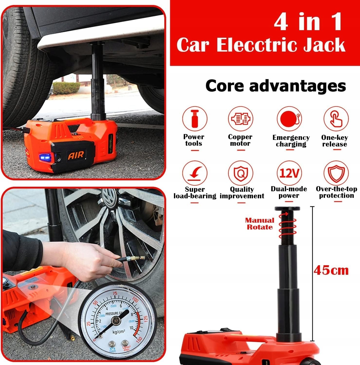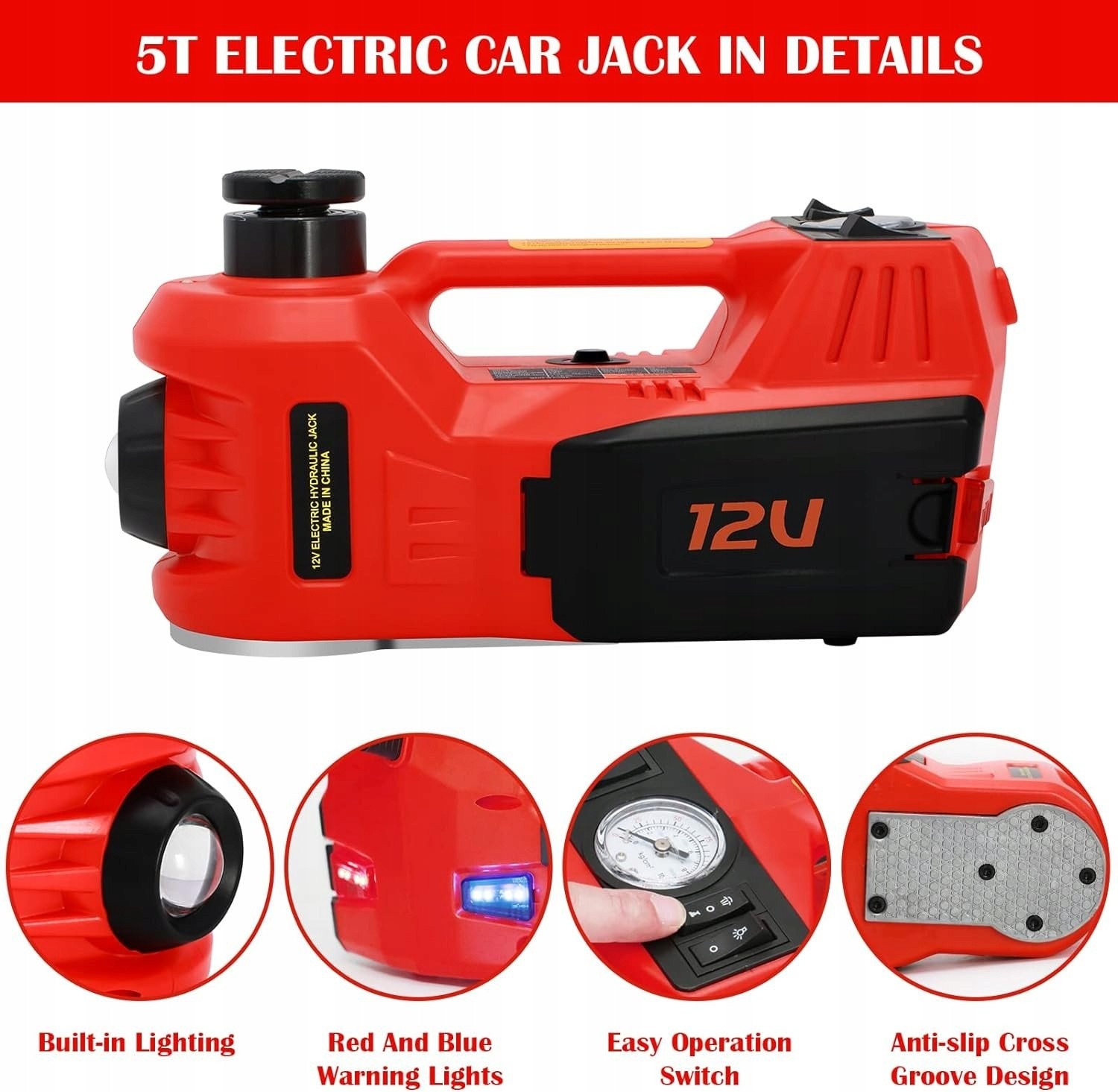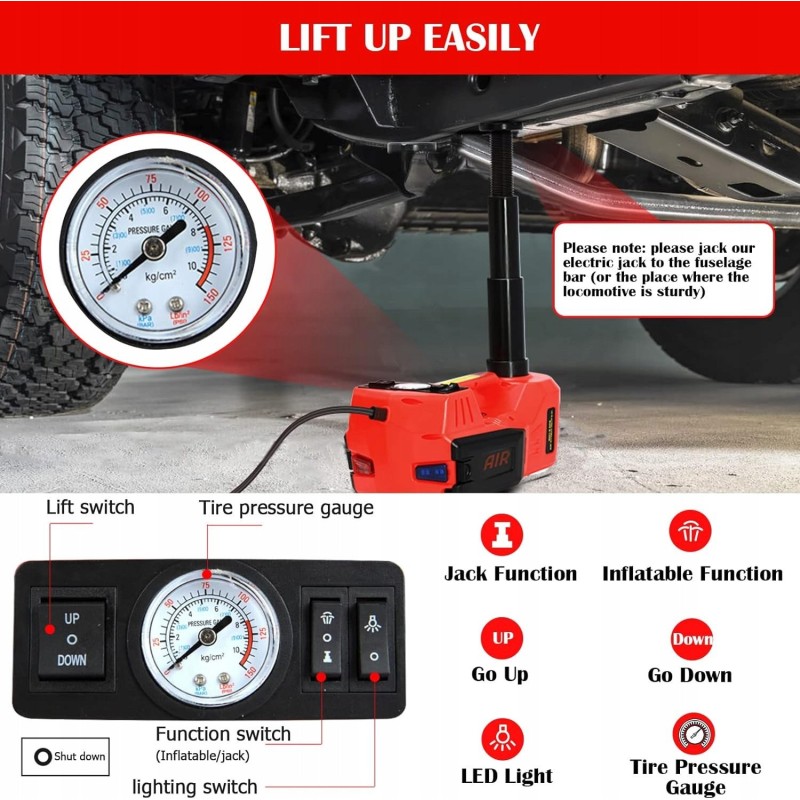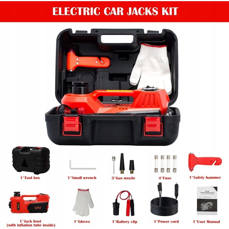 Inncen podnośnik samochodowy elektryczny lewarek 5T DC 12V hydrauliczny 4w1