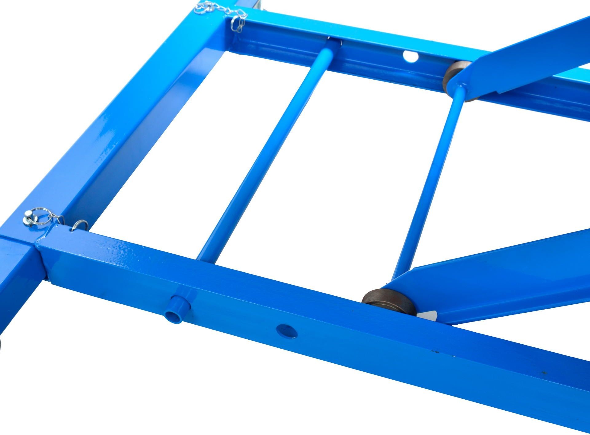 Profesjonalny hydrauliczny podnośnik motocyklowy platformowy. Maksymalny udźwig wynosi 450kg. Maksymalna wysokość podnoszenia to 825 mm. Dodatkowo podnośnik posiada 2-stopniową blokadę zapobiegającą przypadkowemu złożeniu. Zdejmowalna tylna rampa najazdowa wydłuża powierzchnię roboczą do 204 cm (z częścią pochyłą do 248 cm). Antypoślizgowa struktura powierzchni roboczej oraz imadło blokujące przednie koło skutecznie stabilizują pozycję motocykla na platformie. Otwory umieszczone na bokach platformy pozwalają na dodatkowe zabezpieczenie motocykla za pomocą linek, pasów.