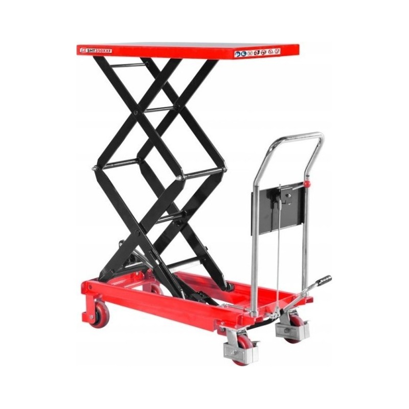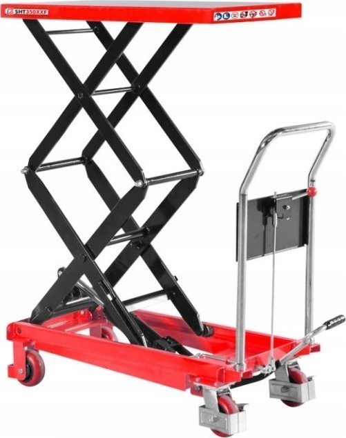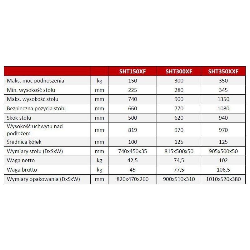- Płynne i stopniowe obniżanie stołu roboczego za pomocą dźwigni ręcznej.