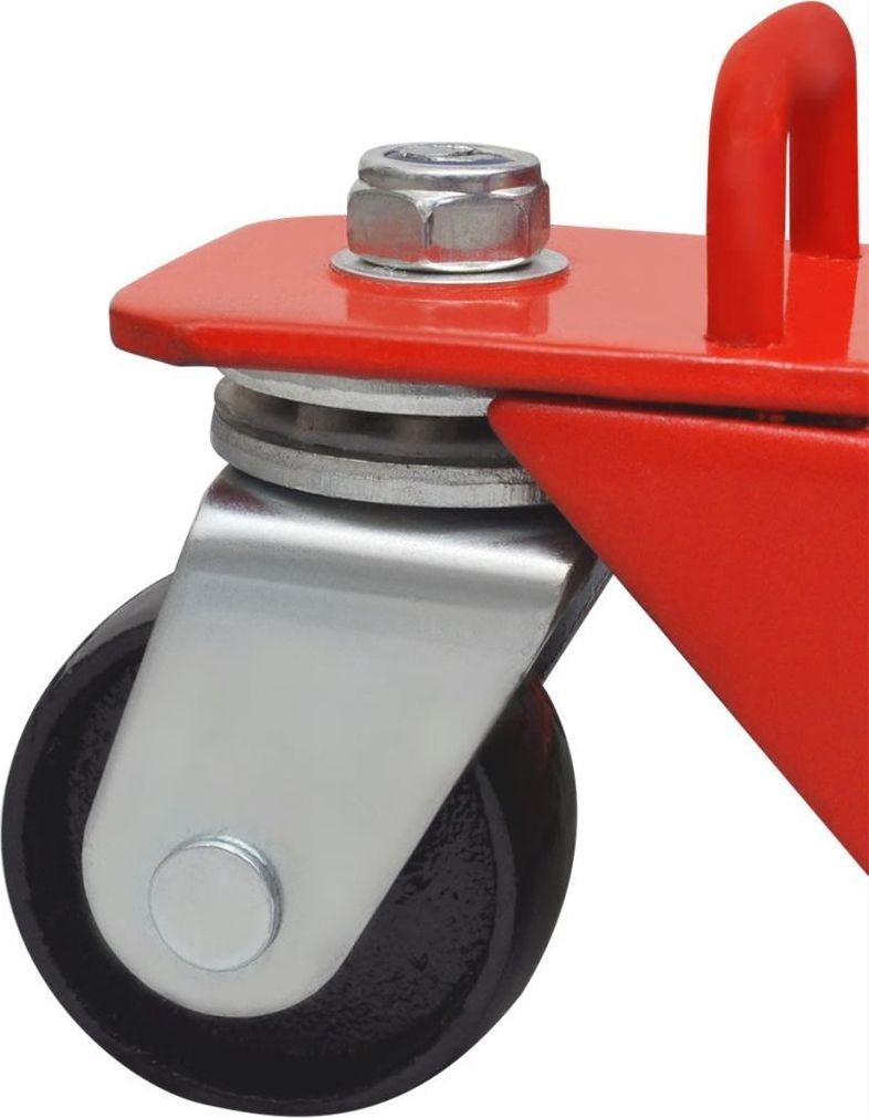 Rączka typu T usprawni pozycjonowanie oraz możliwość manewrowania. Wyposażenie w 2 koła stałe i 2 obrotowe ułatwi poruszanie się po warsztacie. Możliwość złożenia na płasko zapewni oszczędność przestrzeni.
