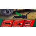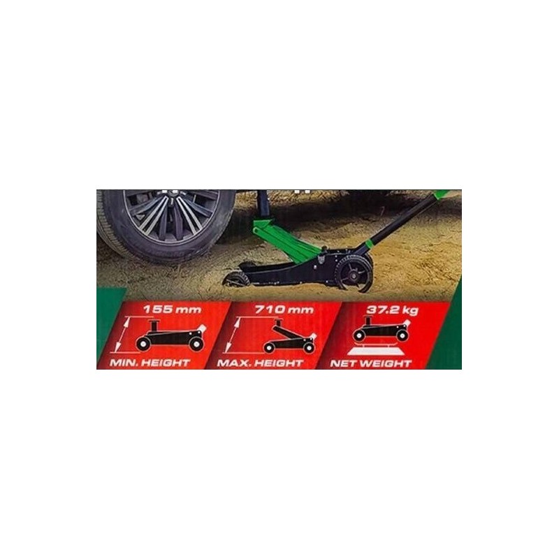 - PRĘDKOŚĆ: Duże koła umożliwiają łatwe i szybkie toczenie się po nierównym terenie, w błocie, piasku lub chodniku; podwójny tłok potrzebuje tylko kilku ruchów, aby osiągnąć maksymalną wysokość.
