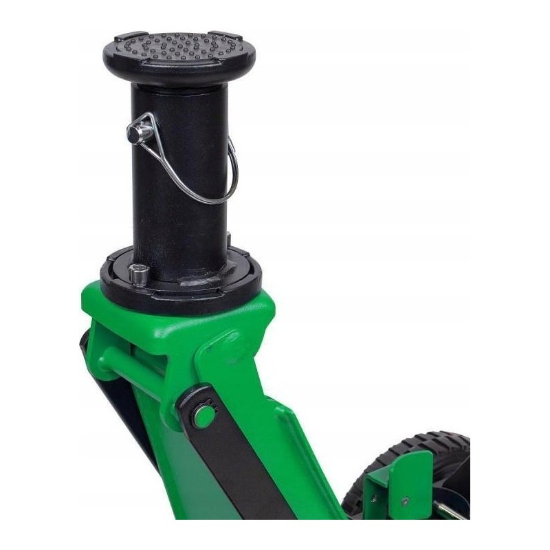 Duże, niepneumatyczne koła sprawiają, że podnośnik jest łatwy w manewrowaniu na każdej nawierzchni, zarówno na drodze, jak i w terenie.