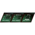 - PRĘDKOŚĆ: Duże koła umożliwiają łatwe i szybkie toczenie się po nierównym podłożu, w błocie, piasku lub chodniku; podwójny tłok potrzebuje tylko kilku ruchów, aby osiągnąć maksymalną wysokość.