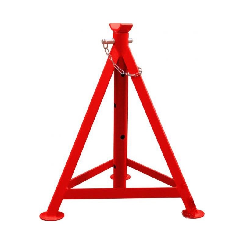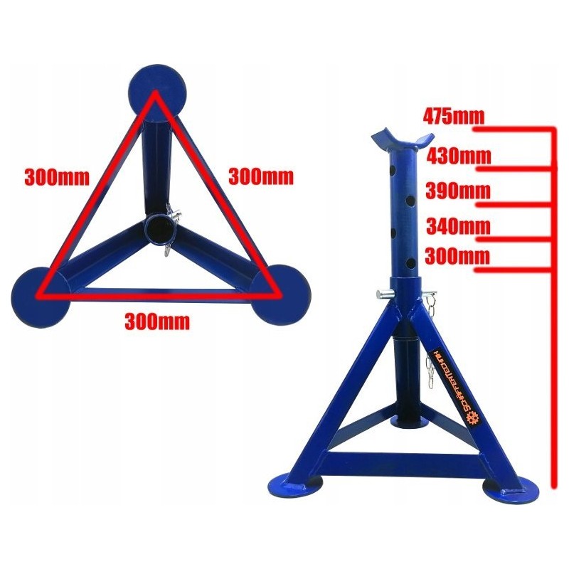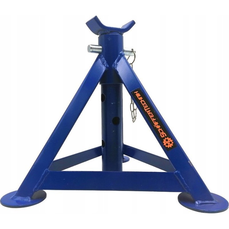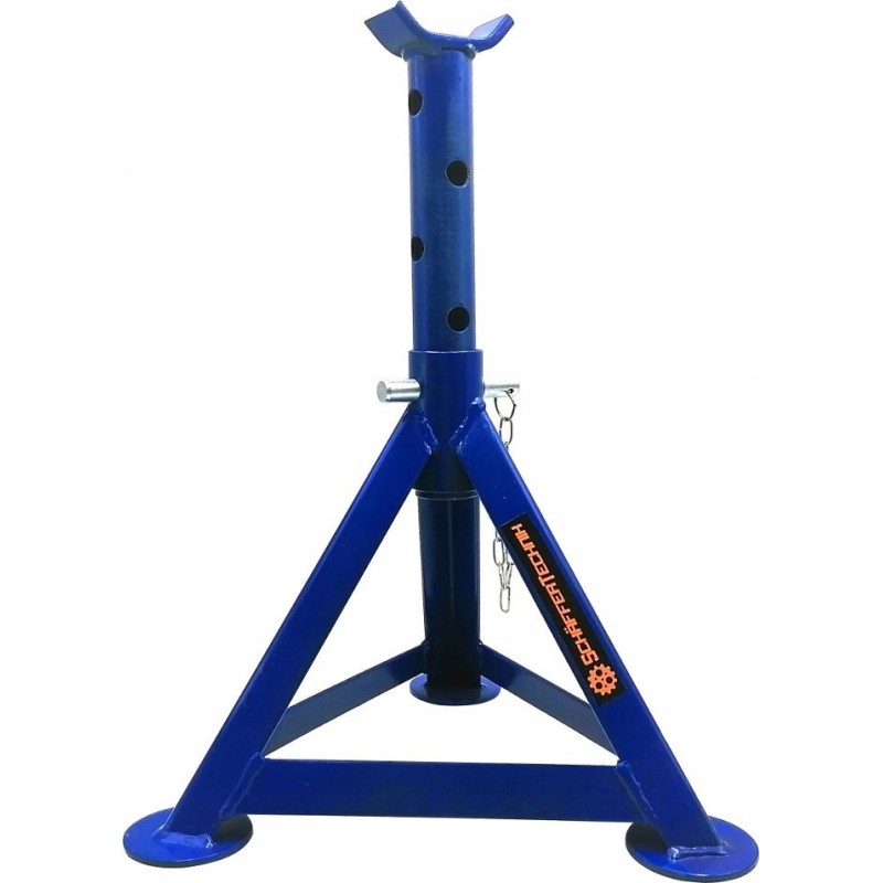 Zabezpieczenie w postaci bolca gwarantuje bezpieczny komfort pracy pod podniesionymi pojazdami bez ryzyka samoistnego obniżenia się podstawki.