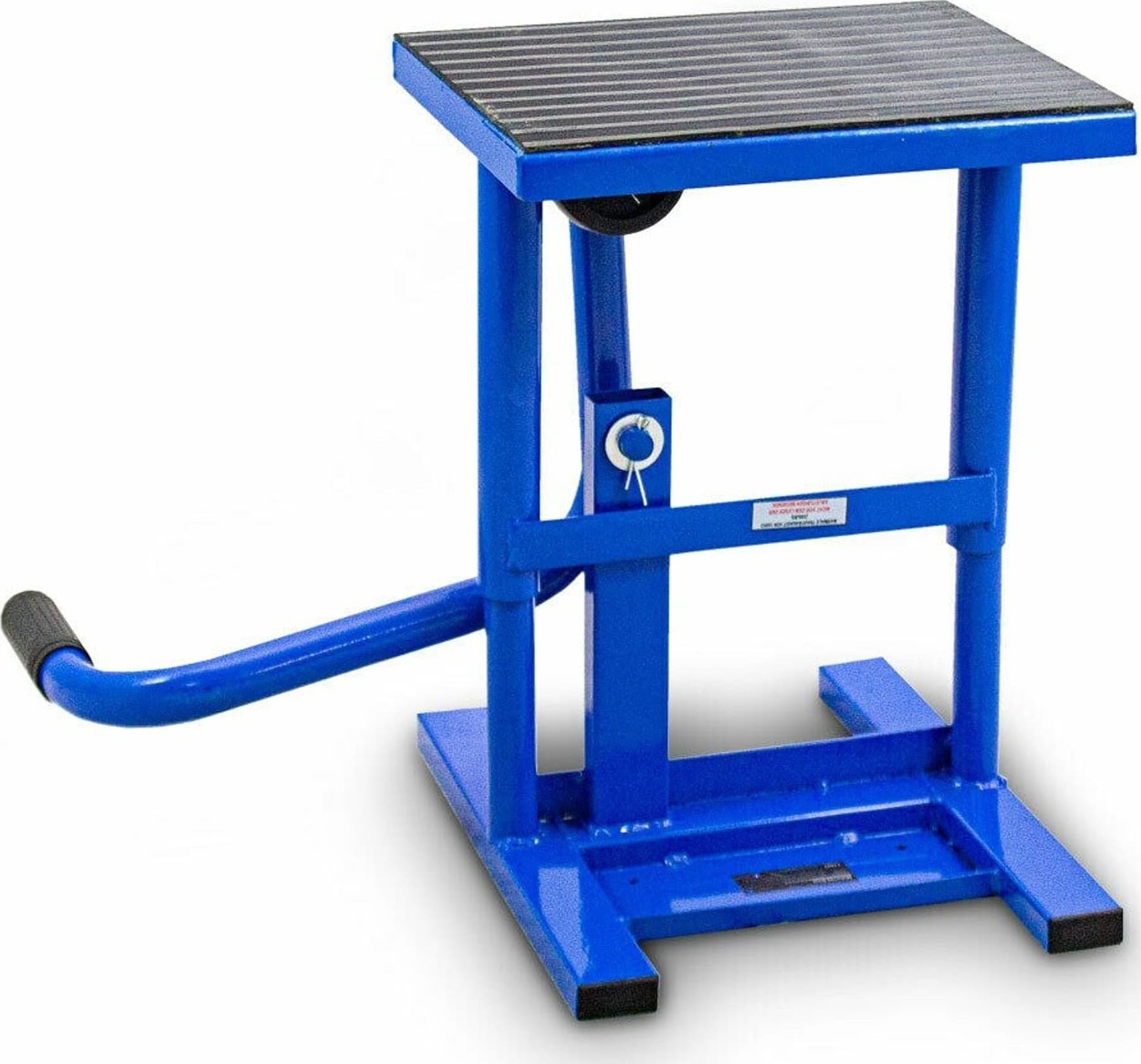 Stojak podnośnikowy do wszelkich prac konserwacyjnych, naprawczych i serwisowych. Świetnie sprawdzi się przy motocyklach typu motocross, enduro.