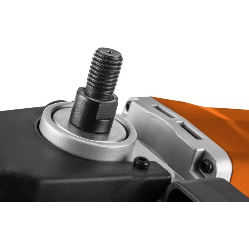Ergonomiczny uchwyt w typie D wpływa na łatwość manewrowania urządzeniem. Tego typu rozwiązanie konstrukcyjne pozwala sprawować 100% kontrolę nad narzędziem. Polerka jest oferowana w zestawie także z praktyczną osłoną przeciwpyłową.