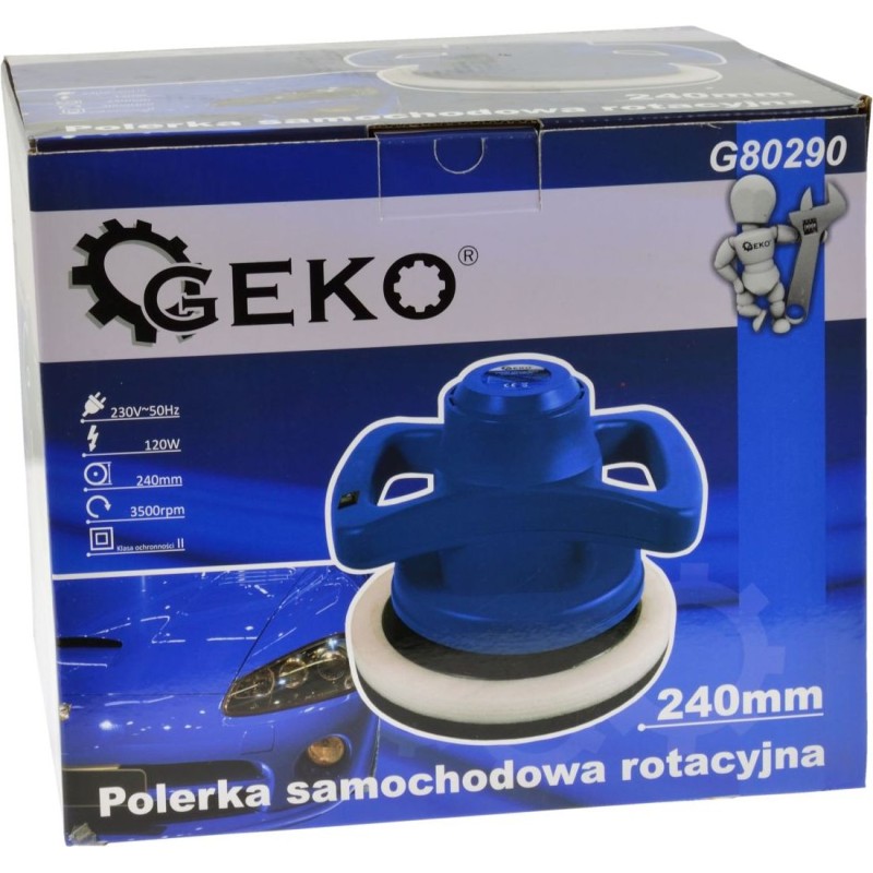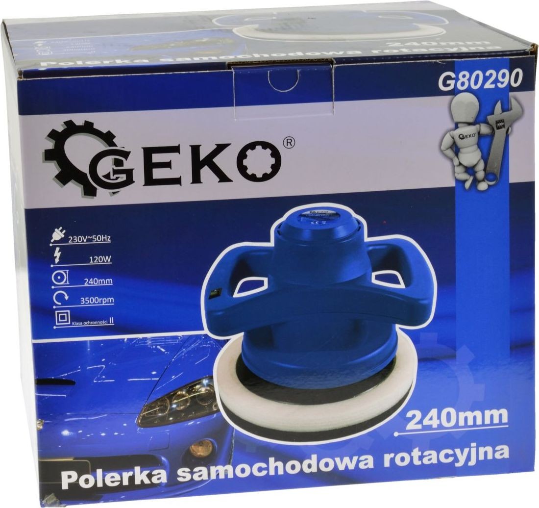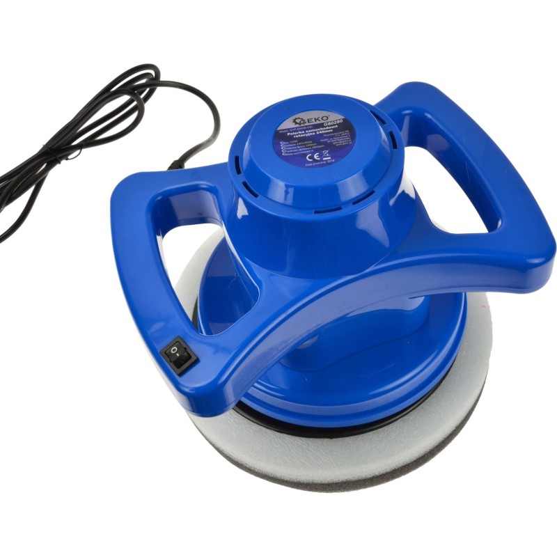 Elektryczna rotacyjna polerka samochodowa 120W 240mm Wysokiej jakości rotacyjna polerka samochodowa 240mm wyposażona w silnik elektryczny o mocy 120W . Prędkość obrotowa na poziomie 3500 obr./min sprawia że polerka idealnie nadaje się do bezpiecznego polerowania karoserii samochodowej oraz innych powierzchni lakierowanych. Polerka wyposażona w dwie nakładki: nakładka tekstylna przeznaczona do nakładania środków polerskich, nakładka typu „baran” przeznaczona do polerowania końcowego. Charakterystyka produktu: wysoka jakość wykonania tarcza polerska o średnicy 240 mm w zestawie dwie nakładki: nakładka tekstylna do nakładania środków polerskich, oraz nakładka typu „baranek” do polerowania końcowego wysokie obroty polerki na poziomie 3500 obr./min dwa wygodne uchwyty po obu stronach urządzenia