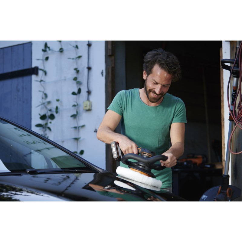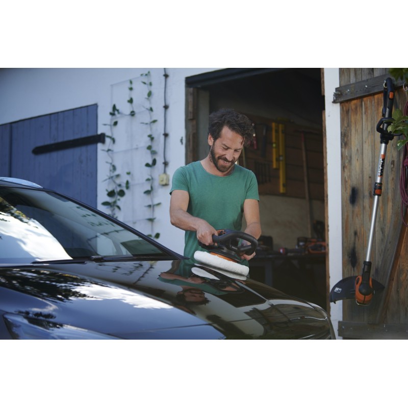 Bezprzewodowa polerka marki WORX - idealna do nakładania pasty i wosku w celu konserwacji lakieru pojazdu.