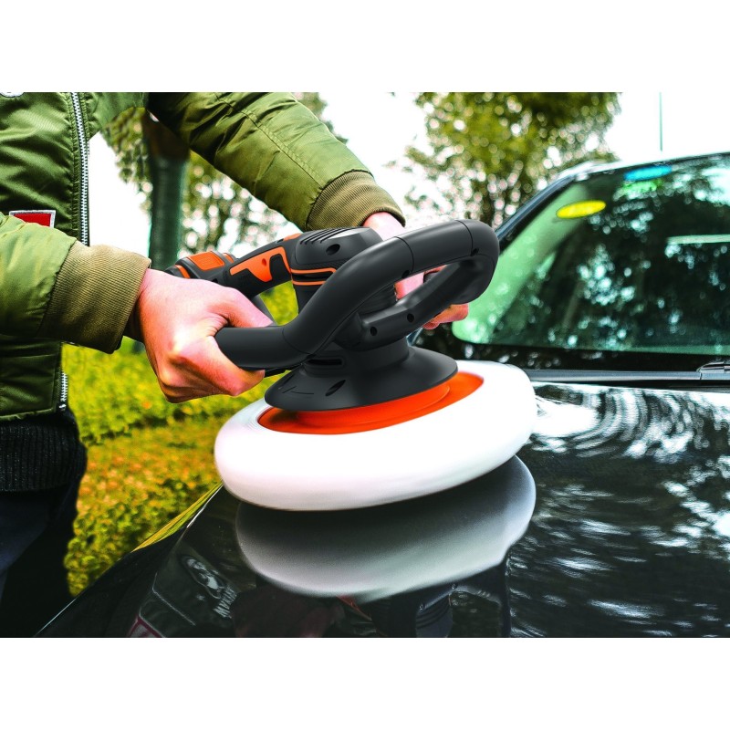 - Bezprzewodowa polerka jest idealna do nakładania pasty i wosku w celu konserwacji lakieru pojazdu.