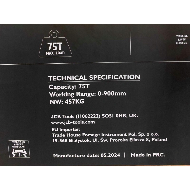 Specyfikacja techniczna prasy hydraulicznej 75t JCB