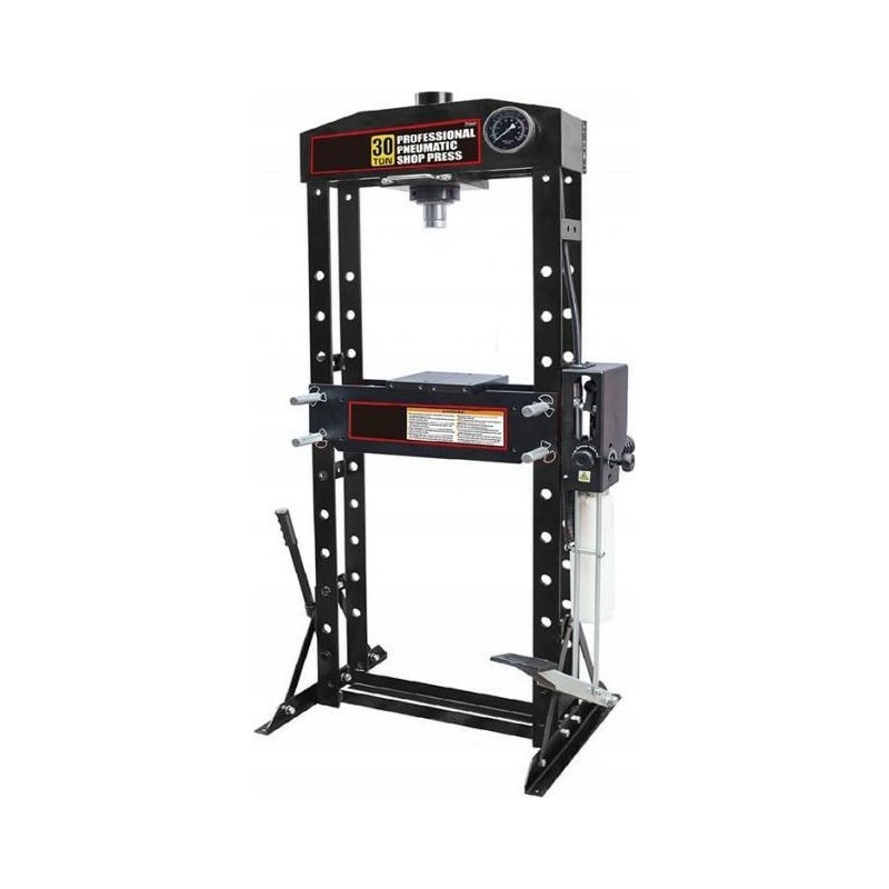 Prasa ta działa w zakresie 0-1025 mm. Nacisk tej prasy hydraulicznej wynosi 30 ton. Urządzenie wyposażone jest w czytelny manometr, który jest skalowany w barach, co ułatwi odczyt wartości ciśnienia w danym momencie.