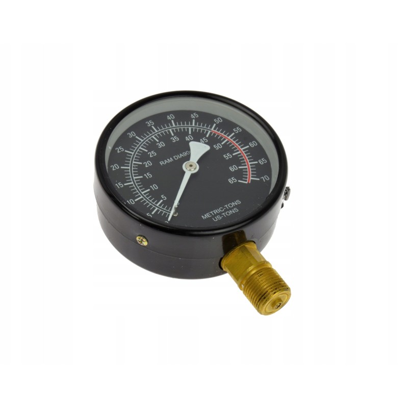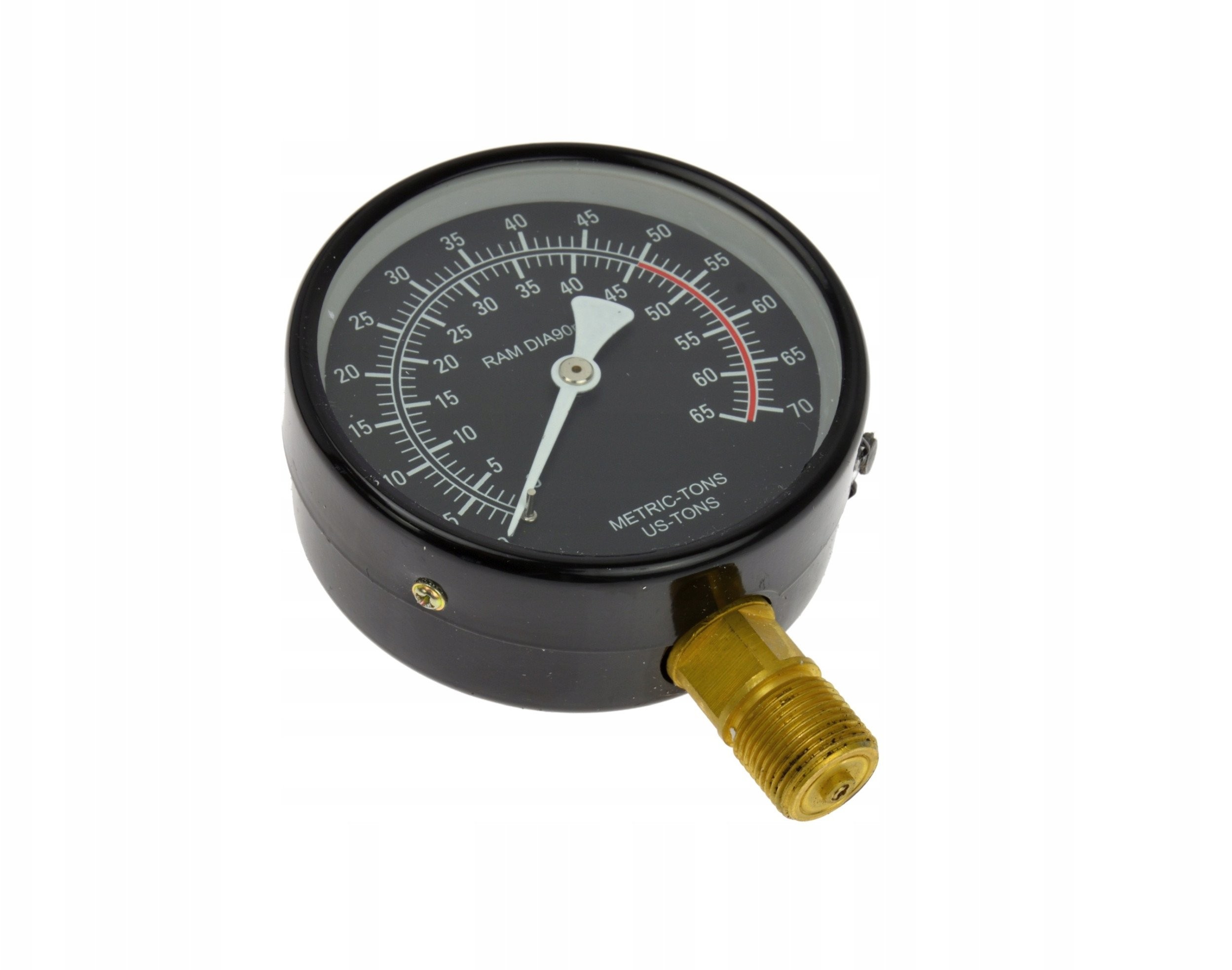 Manometr glicerynowy, który znajduje się w zestawie, umożliwia dokładne pomiary siły w tonach. Dzięki temu użytkownik może być pewny, że praca jest realizowana zgodnie z odpowiednimi parametrami.